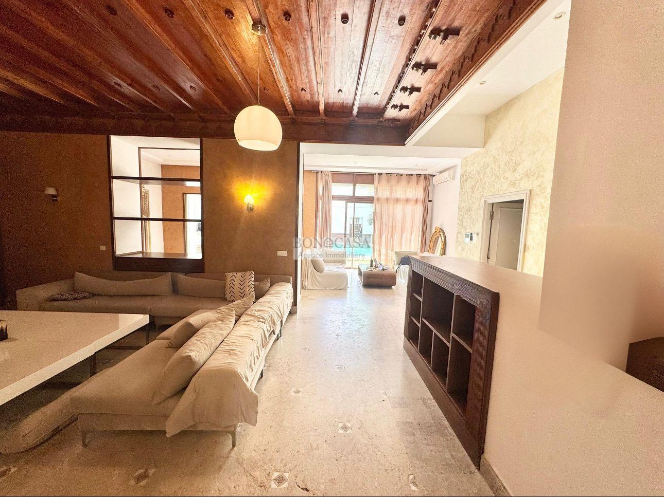 BONACASA vous propose à la location un magnifique rez-de-chaussée de villa meublé avec un style atypique et une touche traditionnelle situé dans un quartier résidentiel sécurisé, proche de toutes commodités et proximité de la plage et du lycée Gustave Flaubert.