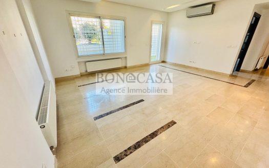 Le premier niveau abrite un double salon et une salle à manger spacieux et lumineux grâce à l’ouverture de ses baies vitrés qui donnent sur une grande terrasse avec une vue panoramique sur le lac et la forêt, une suite parentale avec balcon, dressing et salle d’eau avec douche à l’italienne et Hammam, une deuxième grande terrasse, une cuisine avec séchoir bien équipée, une suite de service avec sa salle d’eau et une salle d’eau invité avec deux vasques.