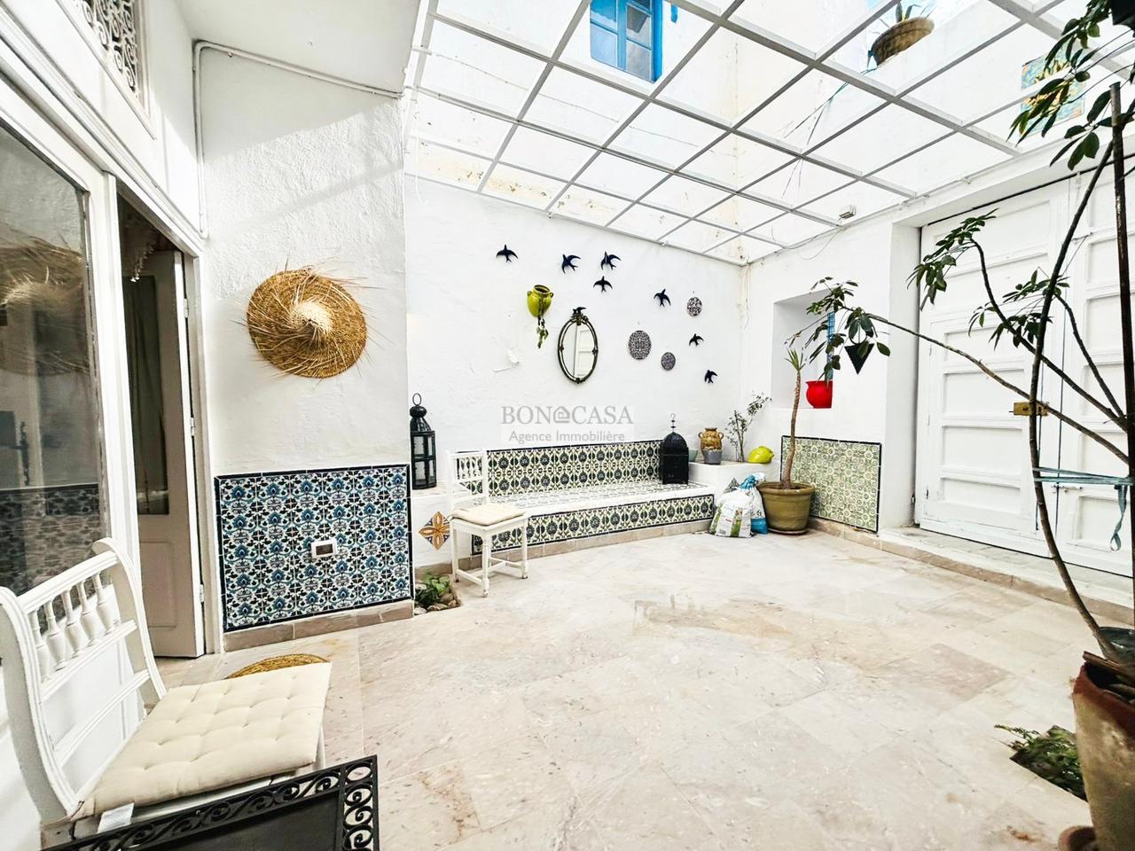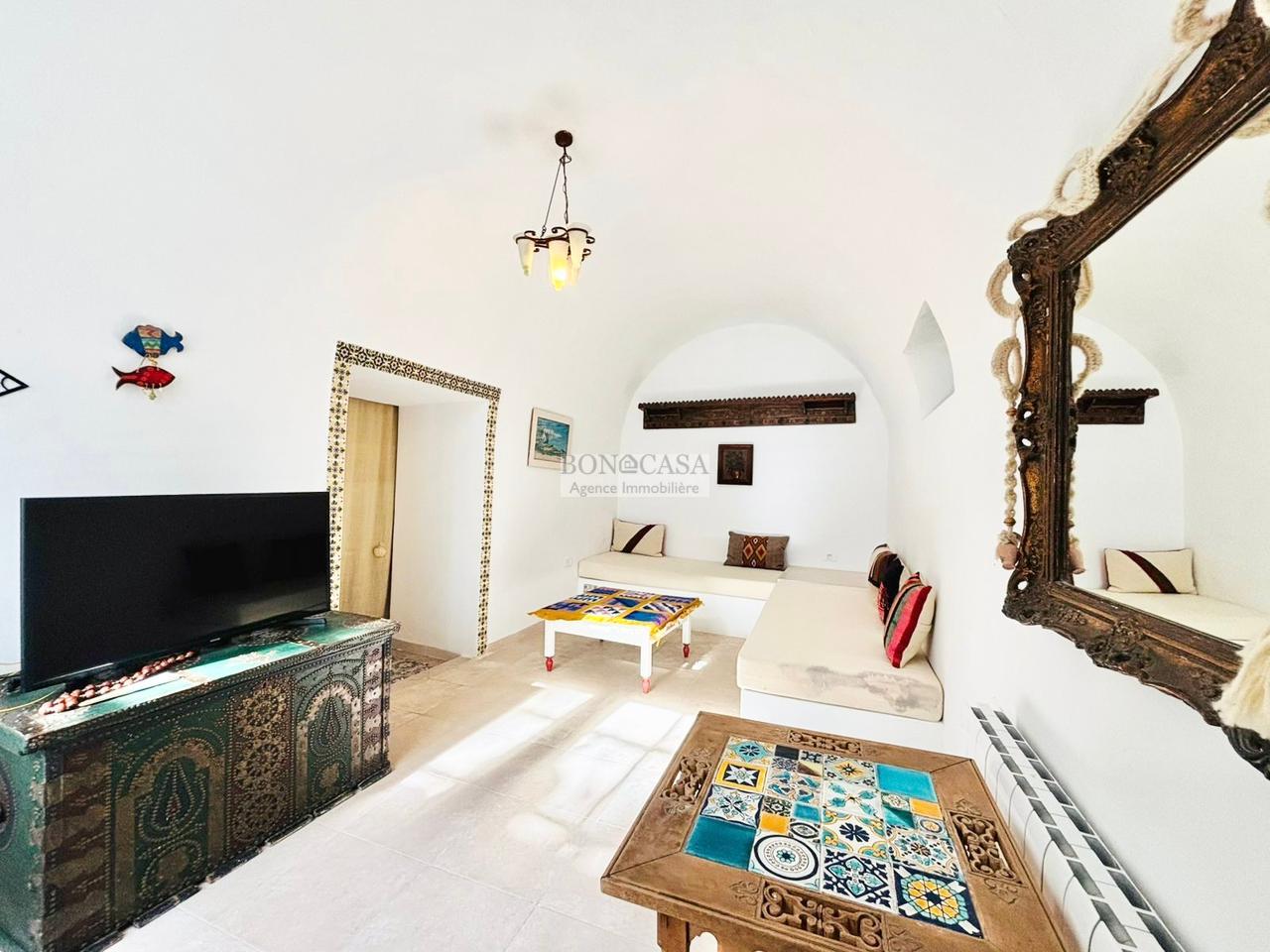 BONACASA vous propose à la location une charmante maisonnette indépendante richement meublée avec un style typiquement située au rez-de-chaussée au cœur du village de Sidi Bou Saïd.