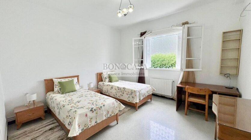 BONACASA vous propose à la location un superbe appartement richement meublé à neuf, avec une entrée indépendante situé au rez-de-chaussée dans un quartier résidence calme, sécurisée, à proximité de toutes commodités et de la plage.