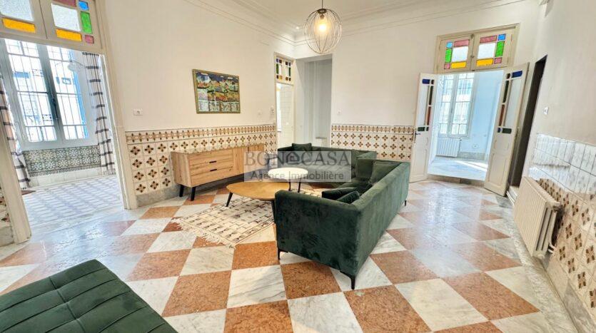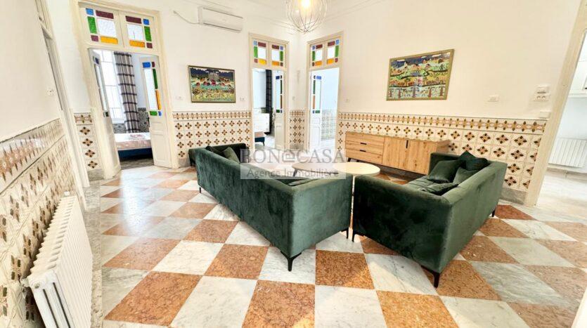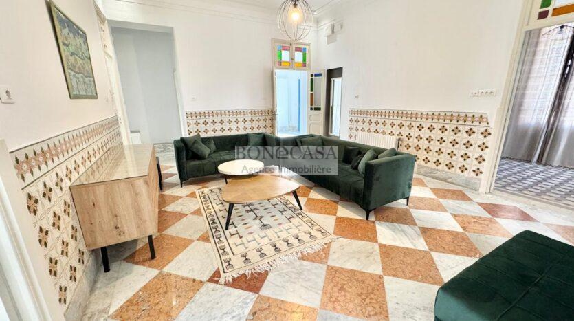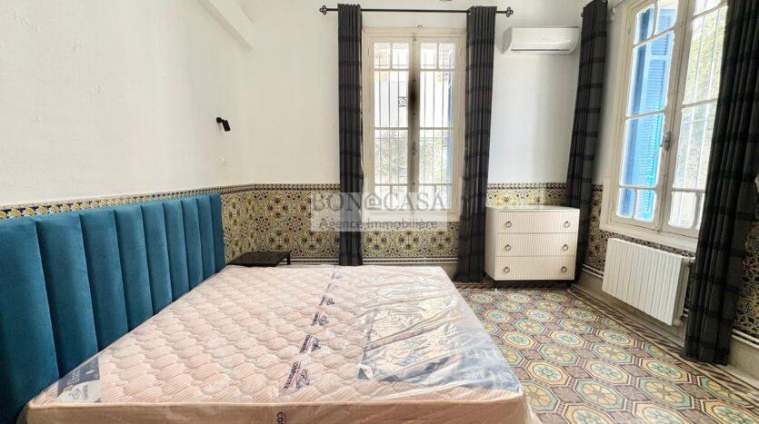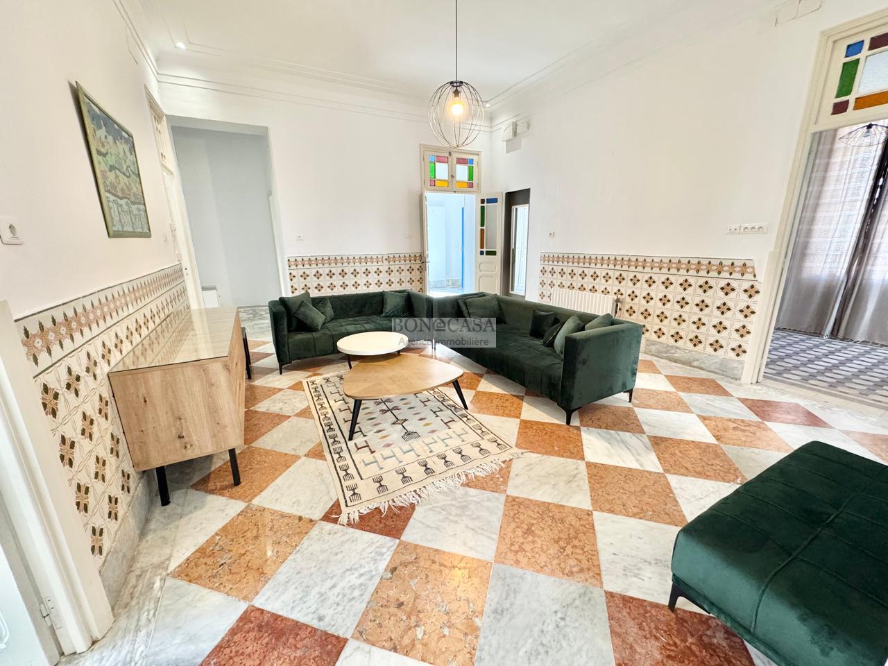 BONACASA vous propose à la location un joli rez-de-chaussée de villa vide/meublé avec une architecture traditionnelle bien raffinée et une entrée indépendante situé dans un quartier résidentiel chic, sécurisé et proche de toutes commodités.
