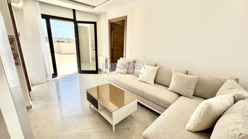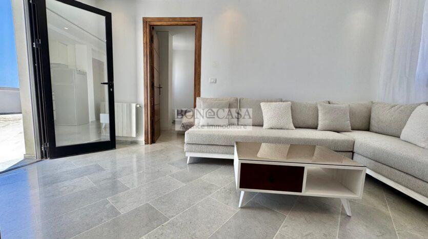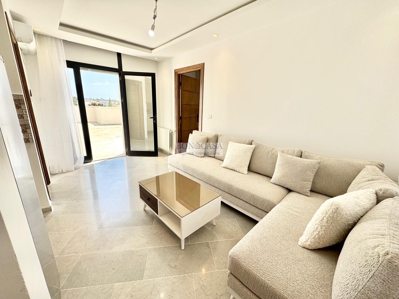 BONACASA vous propose à la location un coquet appartement neuf richement meublé situé au deuxième et dernier étage d’une résidence calme et sécurisée.