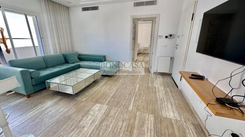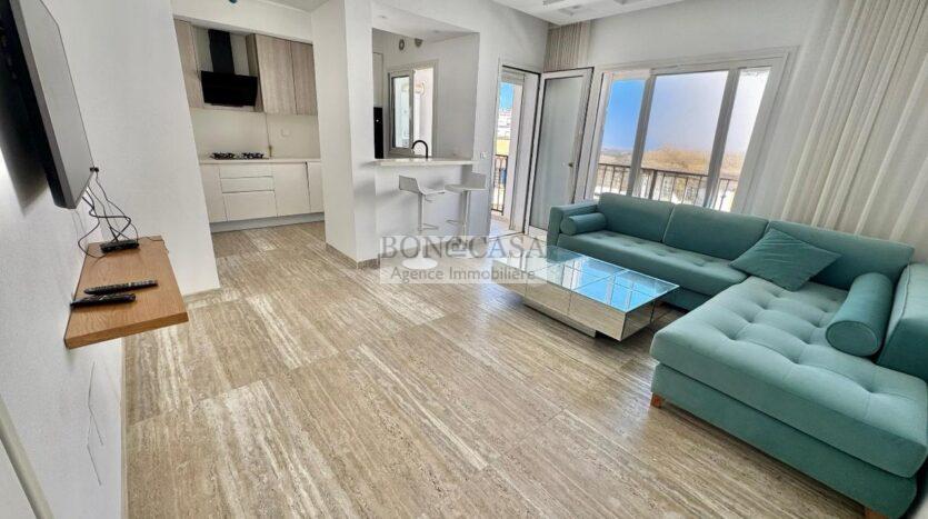 BONACASA vous propose à la location un superbe appartement neuf, richement meublé avec un style moderne et raffiné situé dans une résidence sécurisée, proche de toutes commodités et à 5 minutes à pieds de la plage et du lycée Gustave Flaubert.