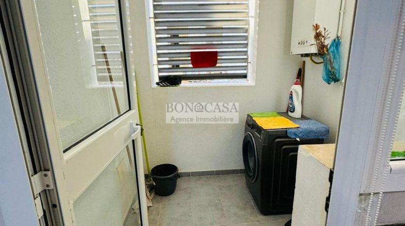 La partie jour se compose d’un salon spacieux et lumineux donnant sur une terrasse de 20m², une cuisine en îlot bien équipée donnant sur un séchoir