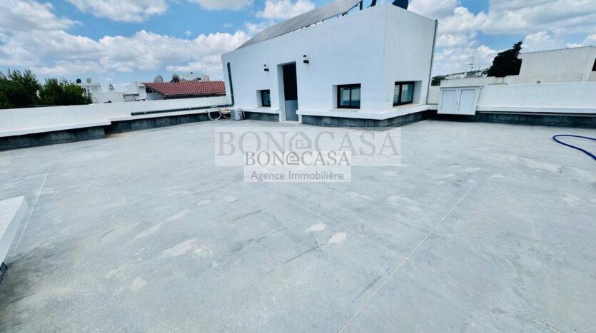 Il se compose d’un rooftop, un salon lumineux, une cuisine équipée donnant sur un séchoir, deux chambres à coucher avec dressing et une salle d’eau commune avec une douche à l’italienne.