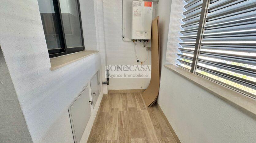 La partie jour se compose d’un salon/salle à manger spacieux et lumineux donnant sur une terrasse avec une vue dégagée, une cuisine bien équipée donnant sur un séchoir et une salle d’eau invités.