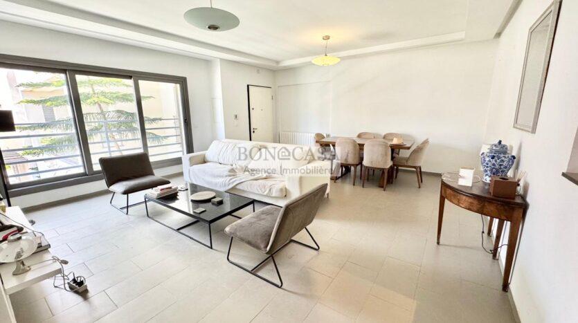 BONACASA vous propose à la location un très joli appartement richement meublé situé au premier étage d’une résidence calme et sécurisée.