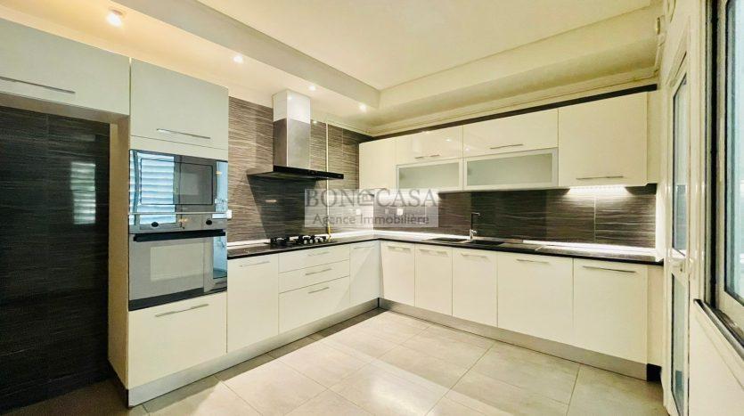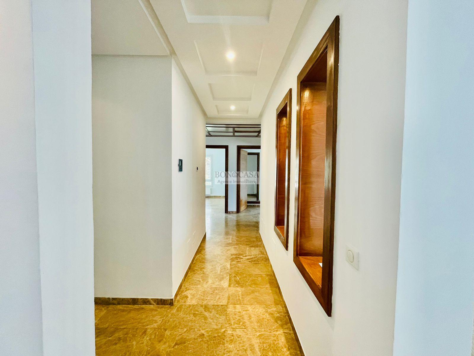 BONACASA vous propose à la vente un bel appartement très haut standing de 175m² situé dans une petite résidence calme et sécurisée. La partie jour loge un salon/salle à manger donnant sur une terrasse avec une vue dégagée, une cuisine bien équipée donnant sur un séchoir et une salle d’eau invités.