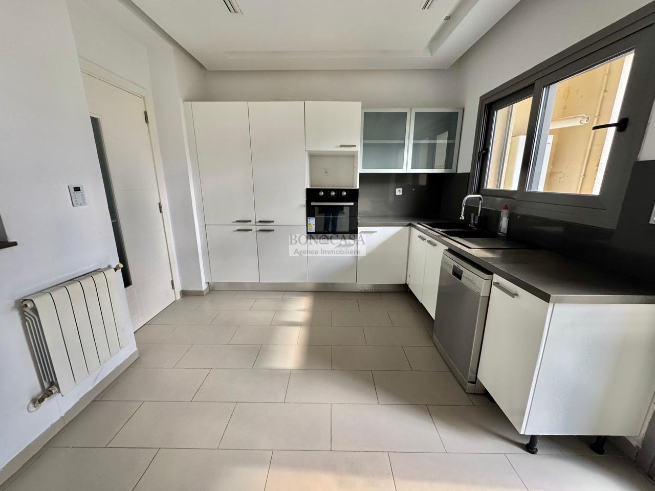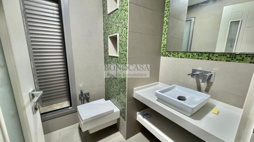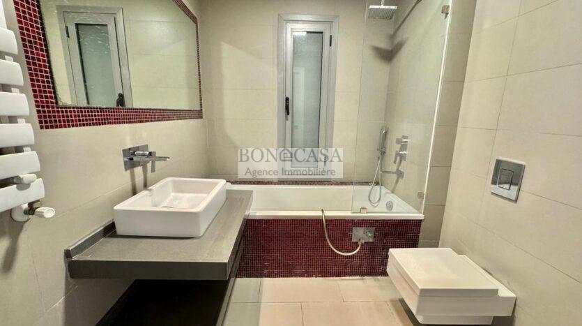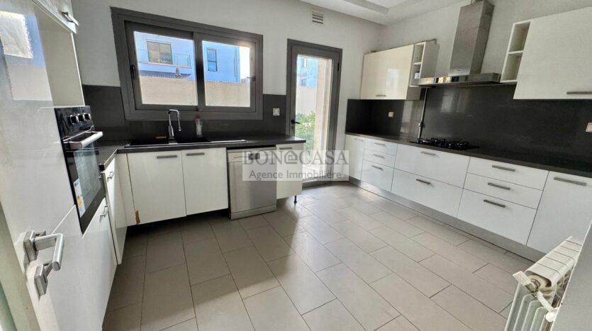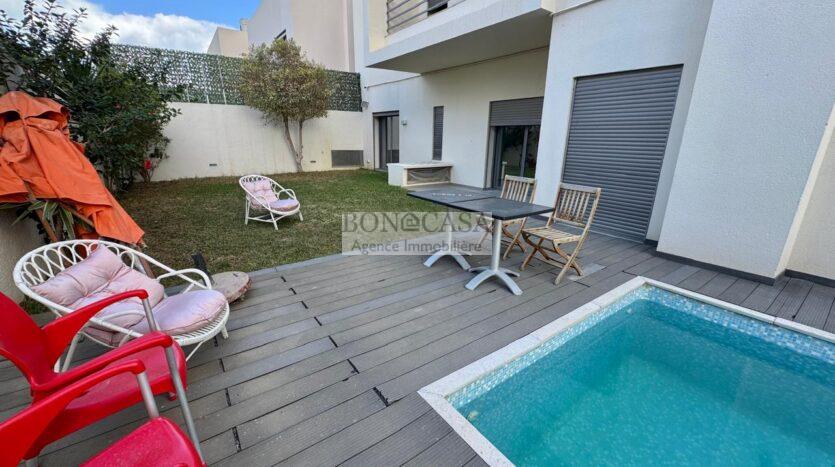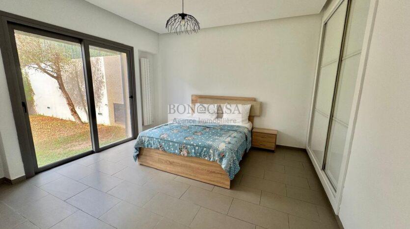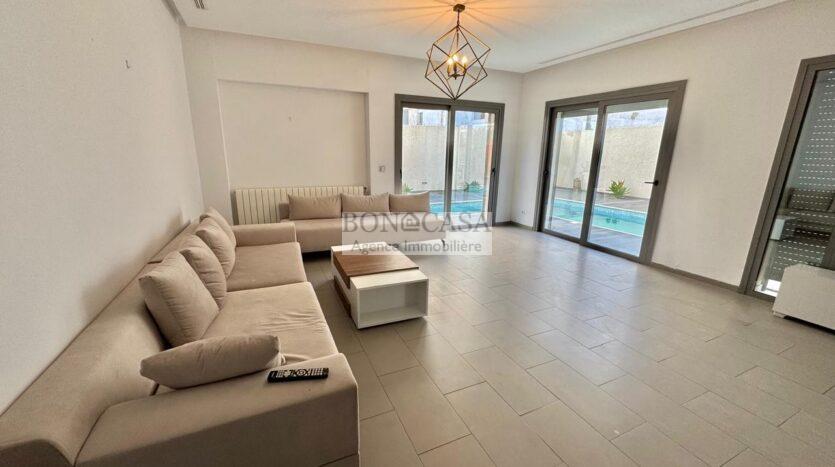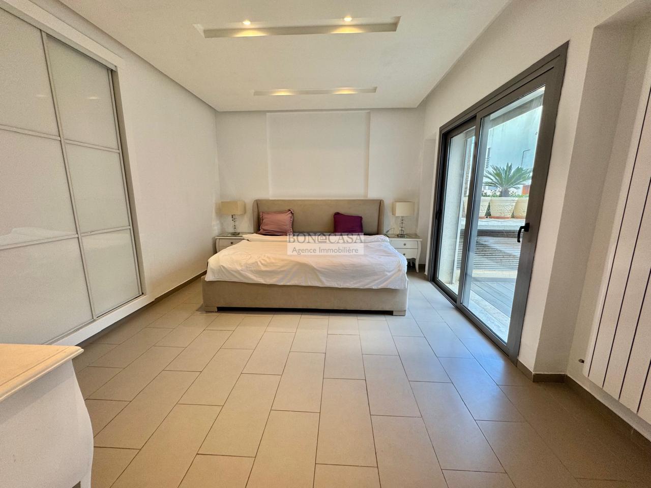 BONACASA vous propose à la location un superbe appartement richement meublé avec un style moderne et raffiné situé au rez-de-chaussée d’une résidence calme et bien sécurisée.