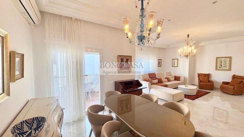 BONACASA vous propose à la location un magnifique appartement richement meublé situé dans une résidence sécurisée, proche de toutes commodités et à proximité de la plage.