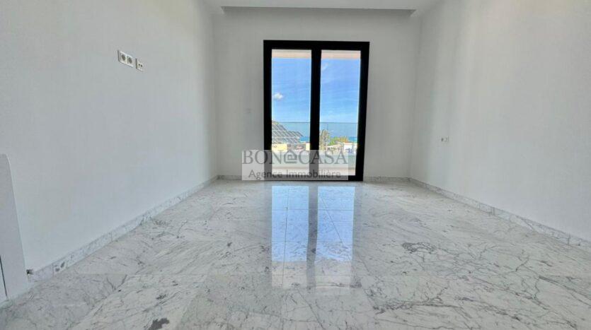 BONACASA vous propose à la location un superbe appartement neuve situé au dernier étage d’une résistance récemment construite, sécurisée et proche de toutes commodités et de la plage.