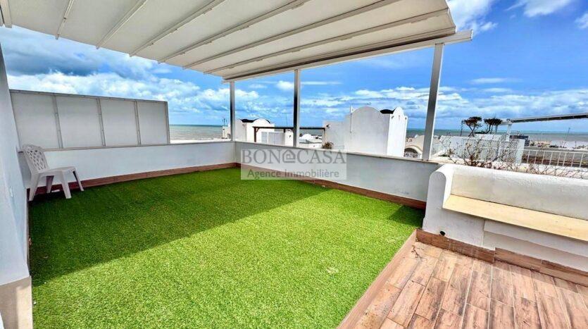 Ce triplex bénéficie d’un rooftop aménagé avec vue imprenable sur la mer et d’un sous-sol avec un garage pour quatre voitures.