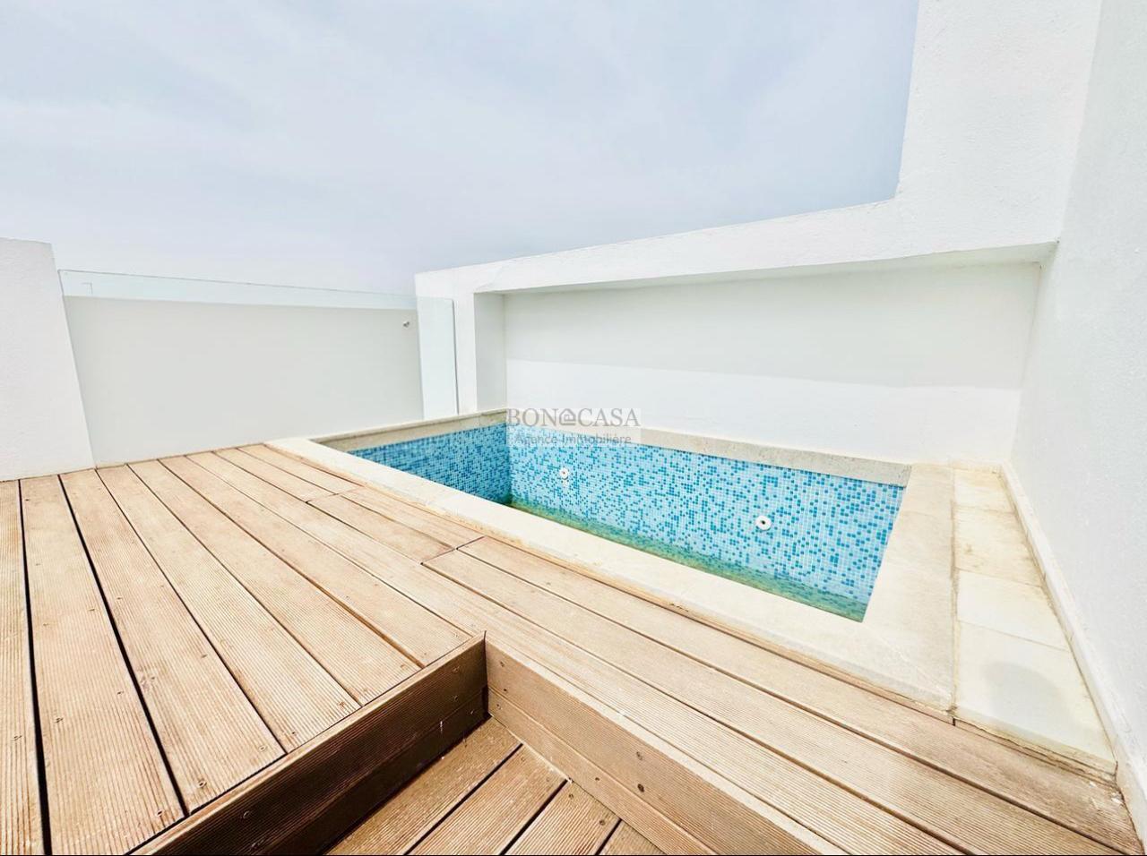 Cette villa bénéficie d’une piscine sur le toit et d’un garage pour deux voitures.