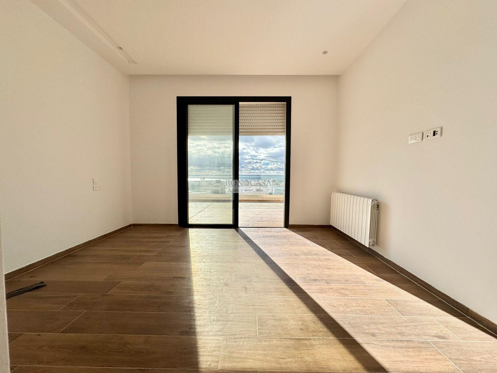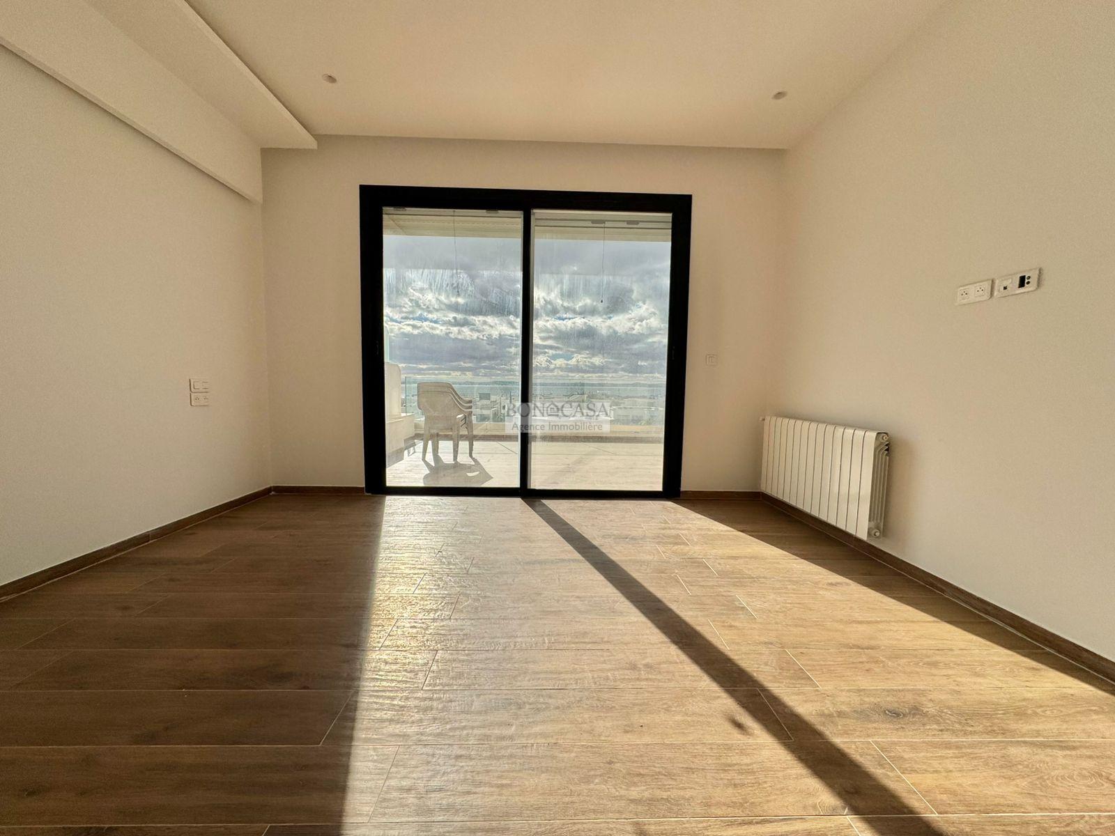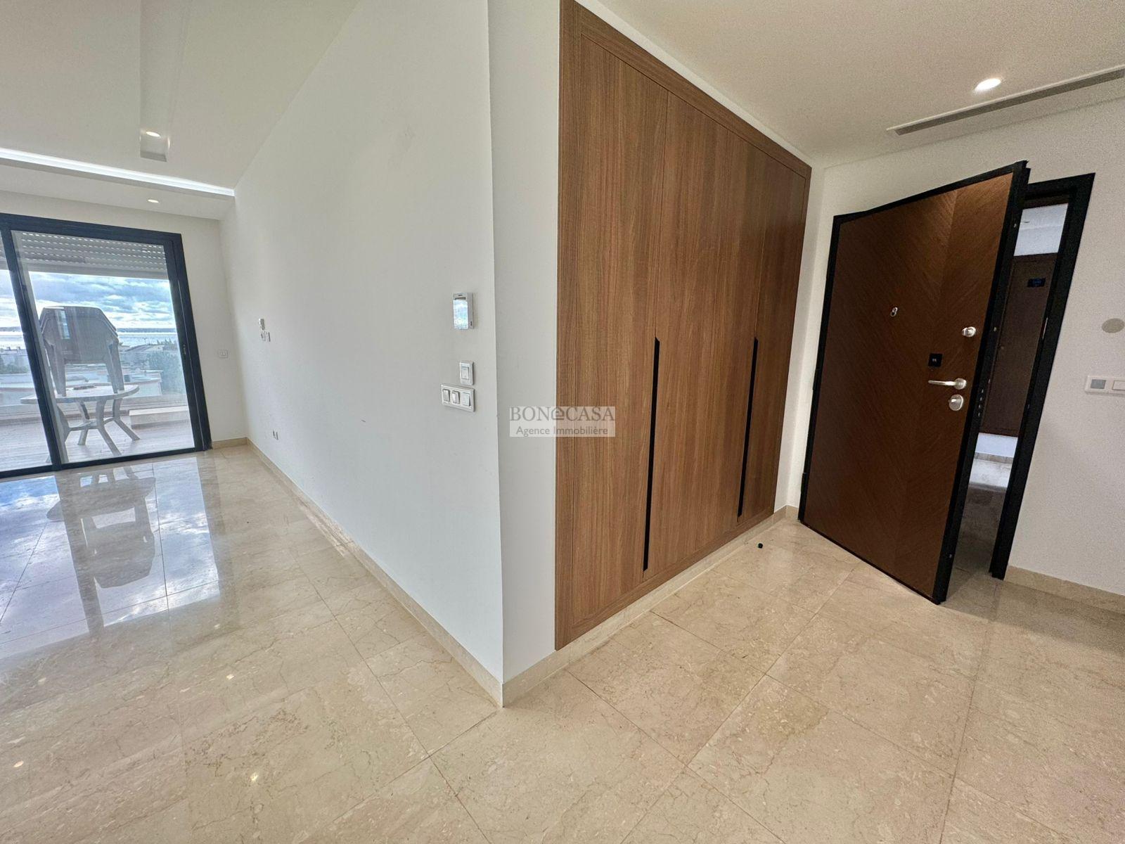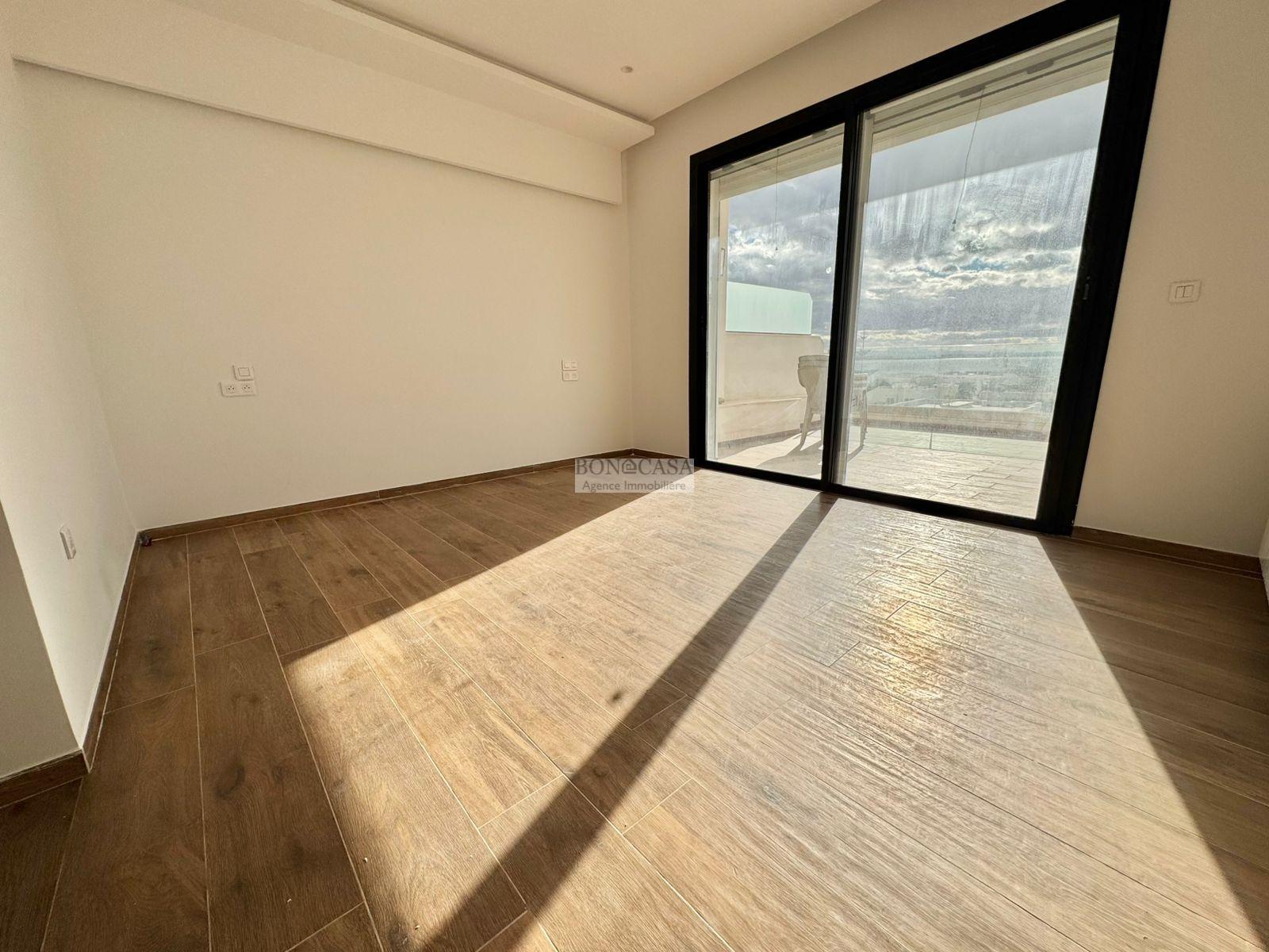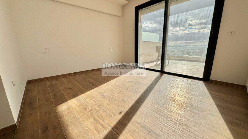 BONACASA vous propose à la location un magnifique appartement situé au dernier étage d’une résidence récemment construite, sécurisée et proche de toutes commodités.