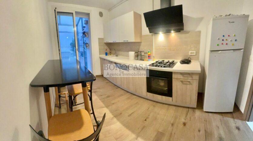Il se compose d’un salon/salle à manger lumineux donnant sur une première terrasse, une cuisine moderne entièrement équipée donnant sur une deuxième terrasse, deux chambres à coucher et une salle de bain commune.