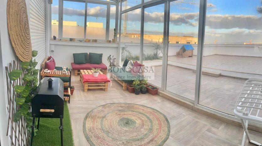 BONACASA vous propose à la location un penthouse d’exception richement meublé situé dans une résidence calme et sécurisée à Ennasr 2.