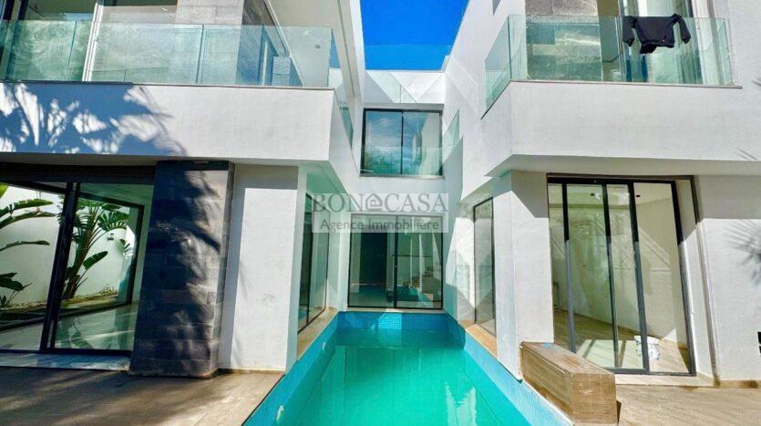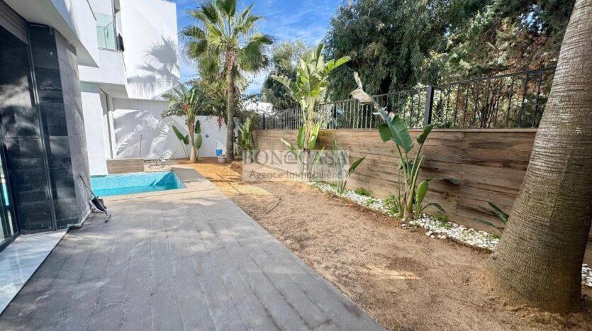 BONACASA vous propose à la location une superbe villa jumelée neuve sur trois niveaux située dans une résidence bien sécurisée et à proximité de la plage.