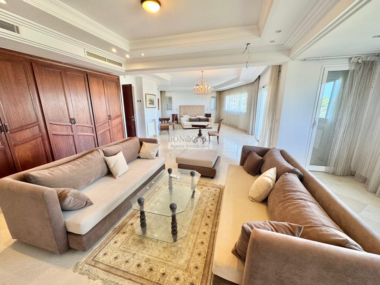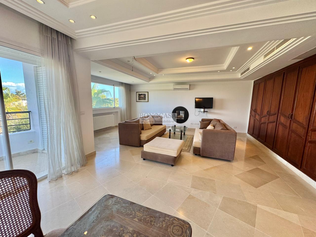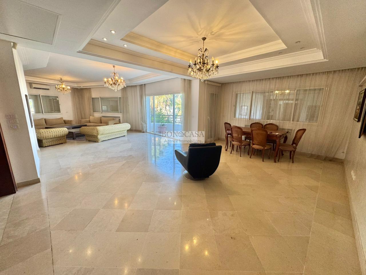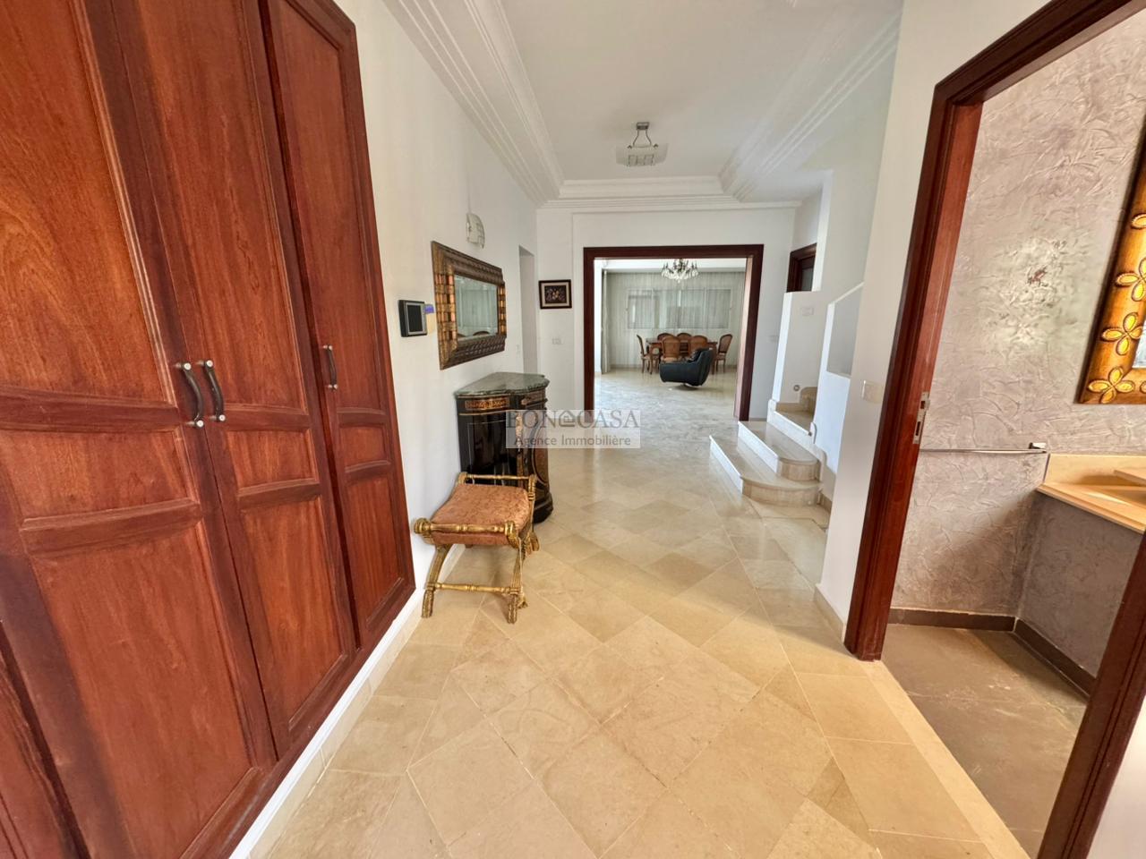 BONACASA vous propose à la location une magnifique villa jumelée sur trois niveaux de 500m² située dans un quartier résidentiel calme et sécurisé.