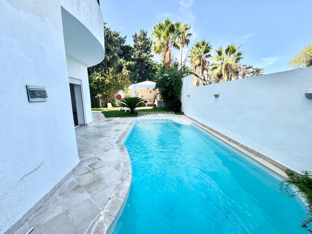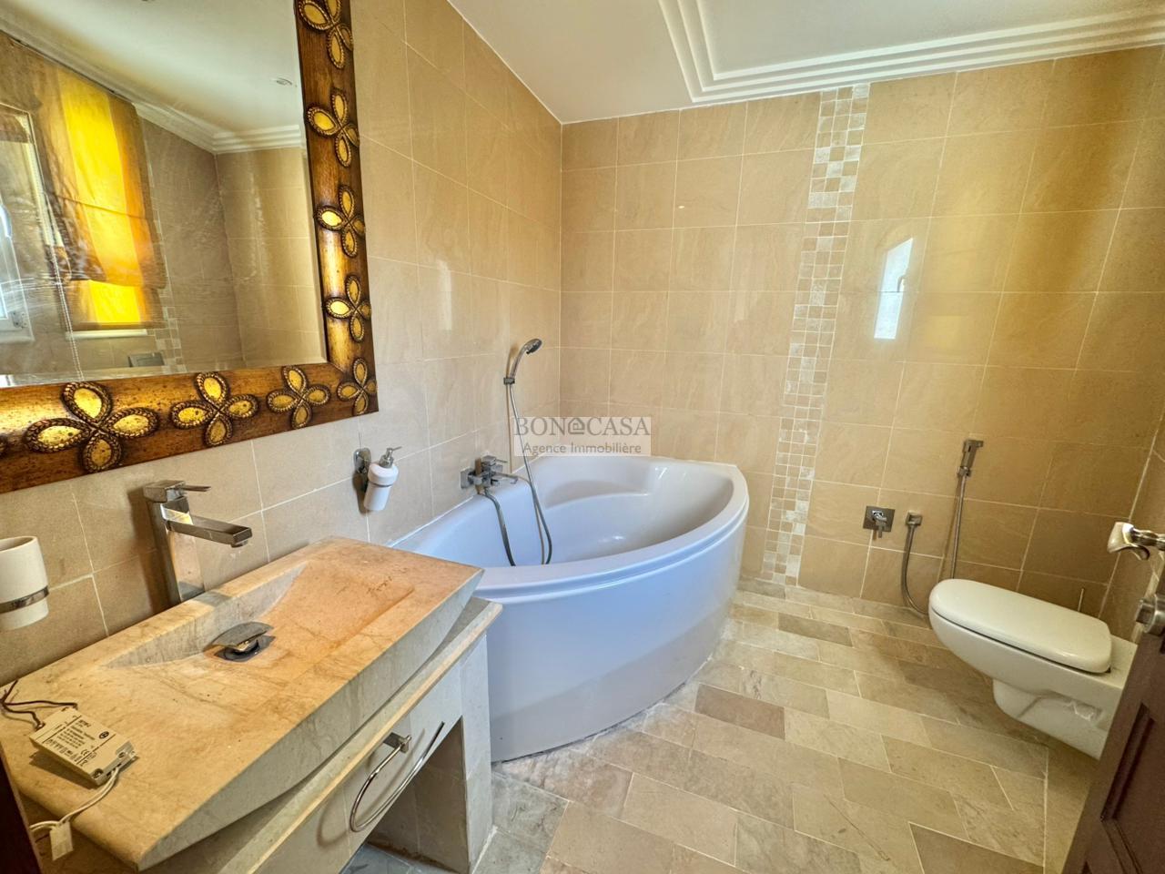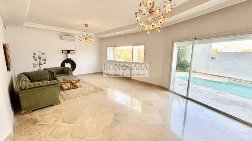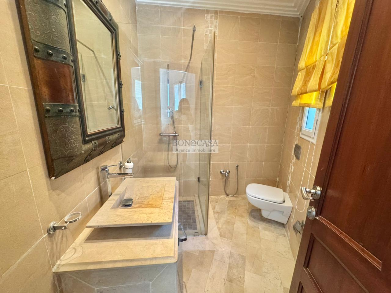BONACASA vous propose à la location une magnifique villa jumelée sur trois niveaux de 500m² située dans un quartier résidentiel calme et sécurisé.