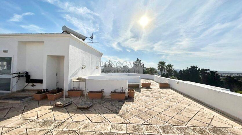 Cette demeure bénéficie d’une très grande terrasse avec une vue dégagée et un garage pour trois voitures.