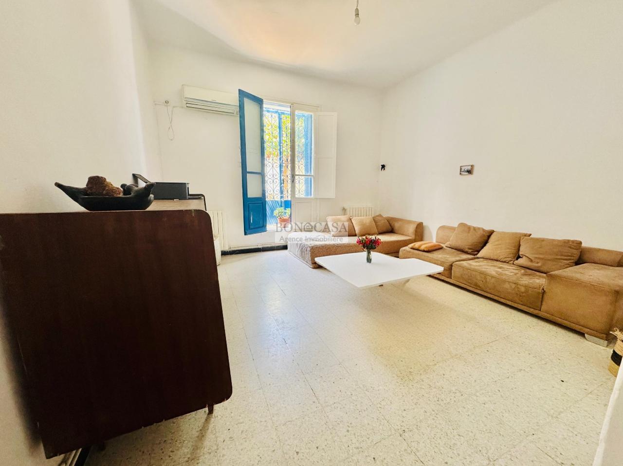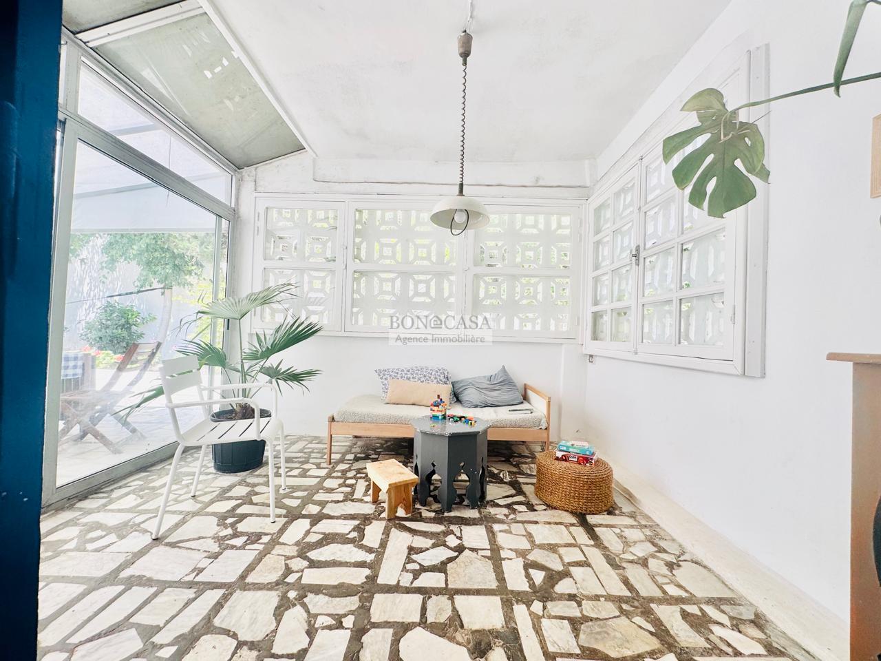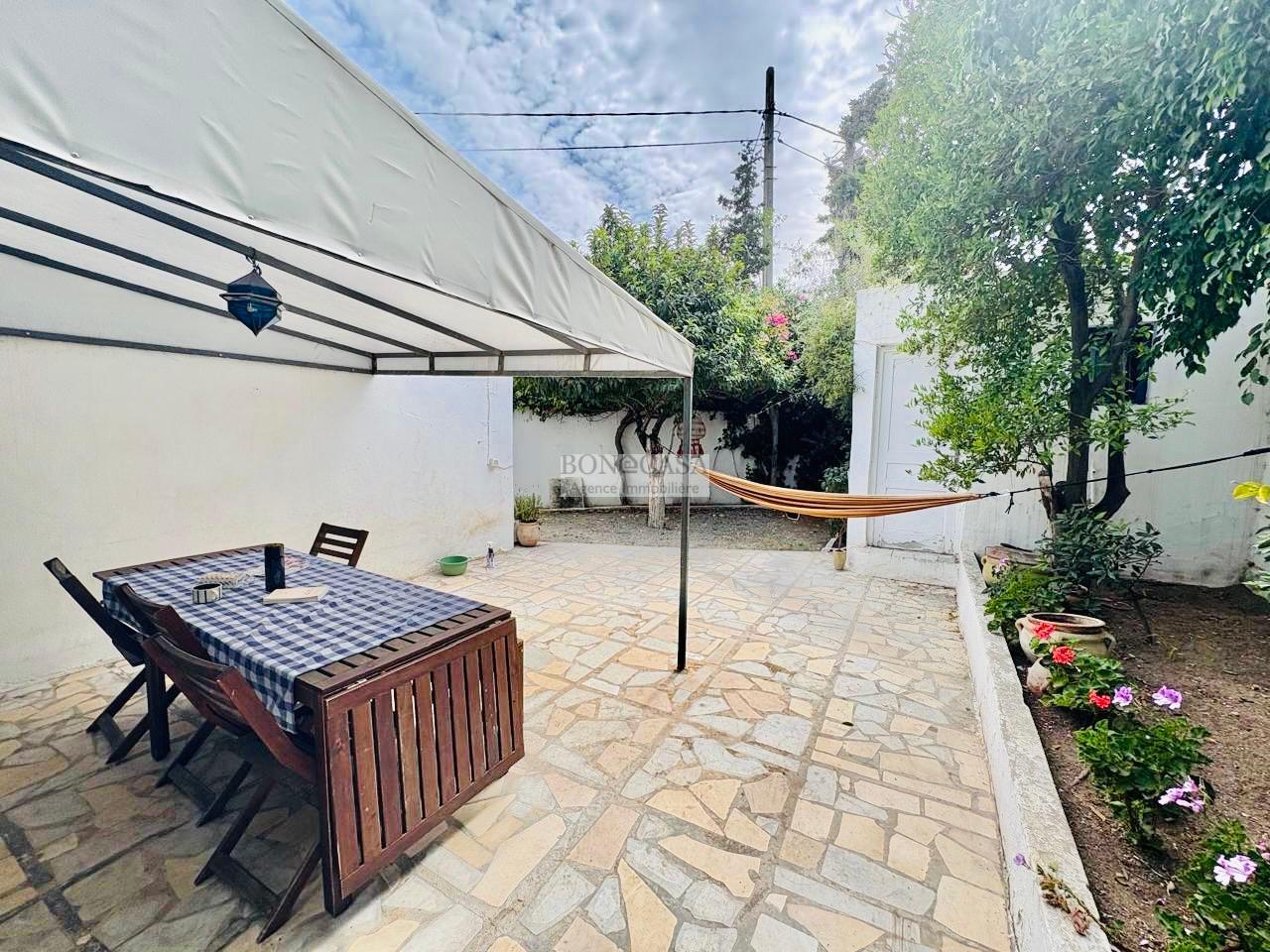 BONACASA vous propose à la location un très jolie villa atypique, plain pied vide située dans un quartier résidentiel calme, sécurisée et à deux minutes de la plage.