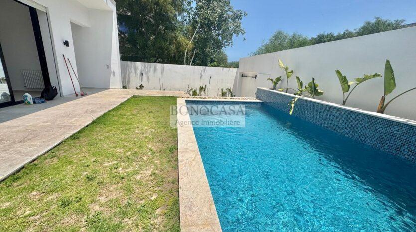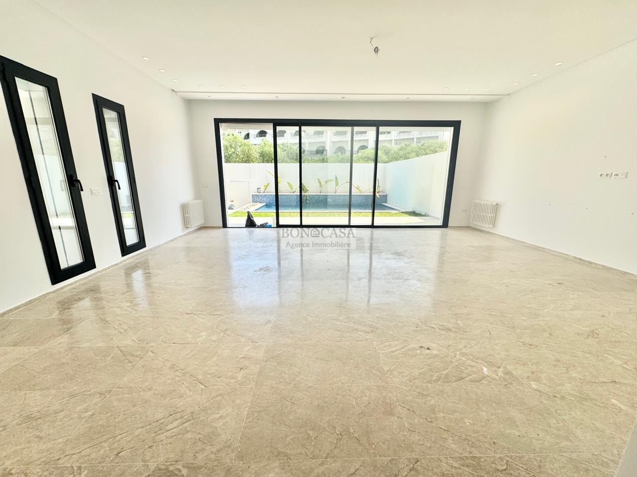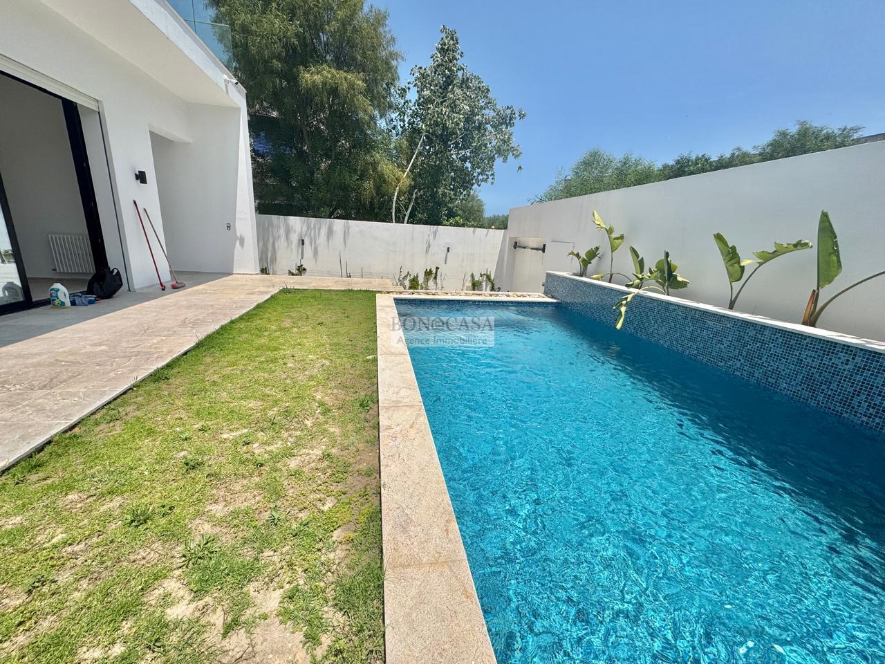 BONACASA vous propose à la location une splendide villa neuve sur trois niveaux située dans un quartier résidentiel prisé de Gammarth.
