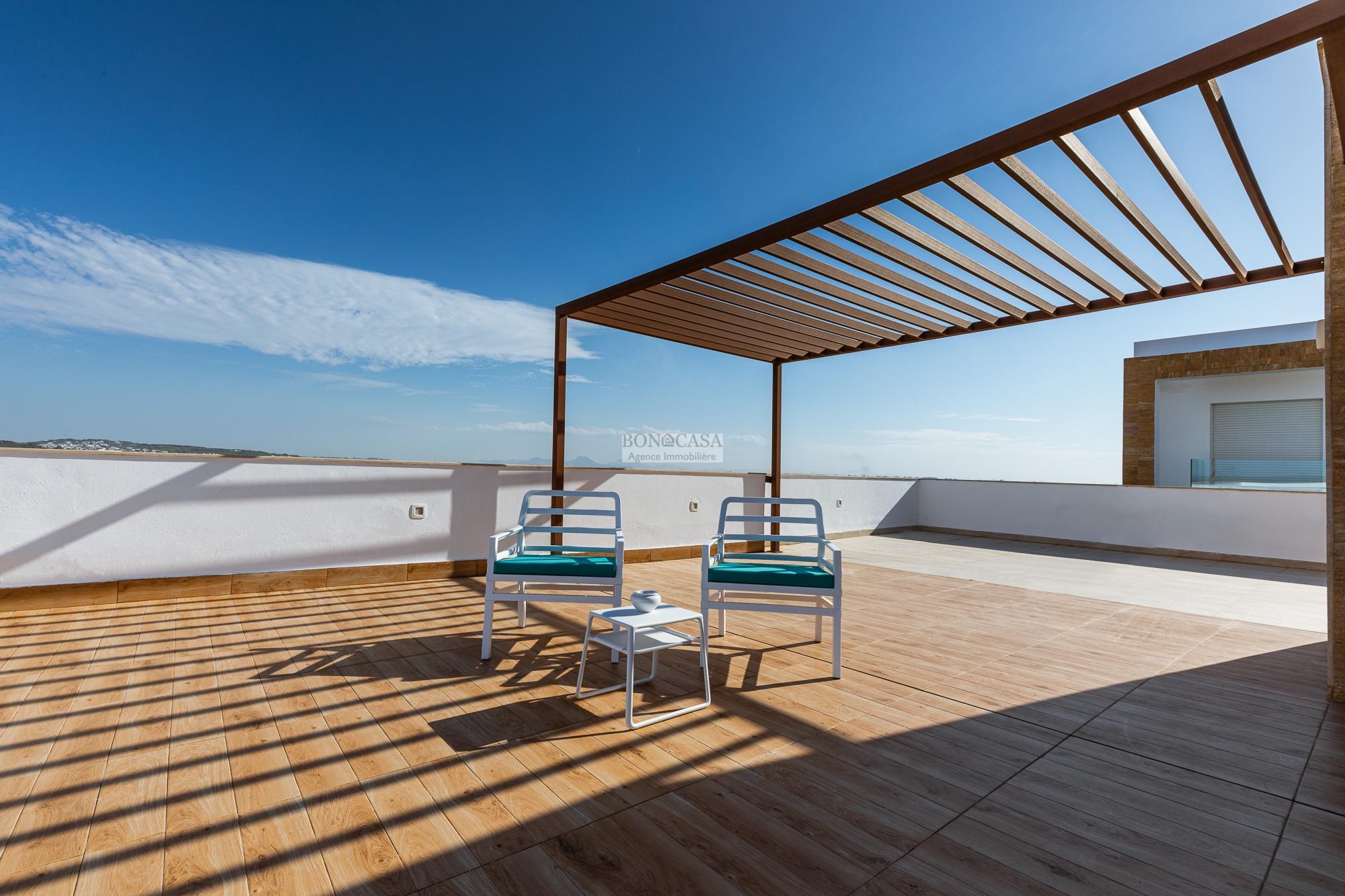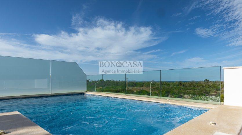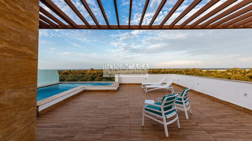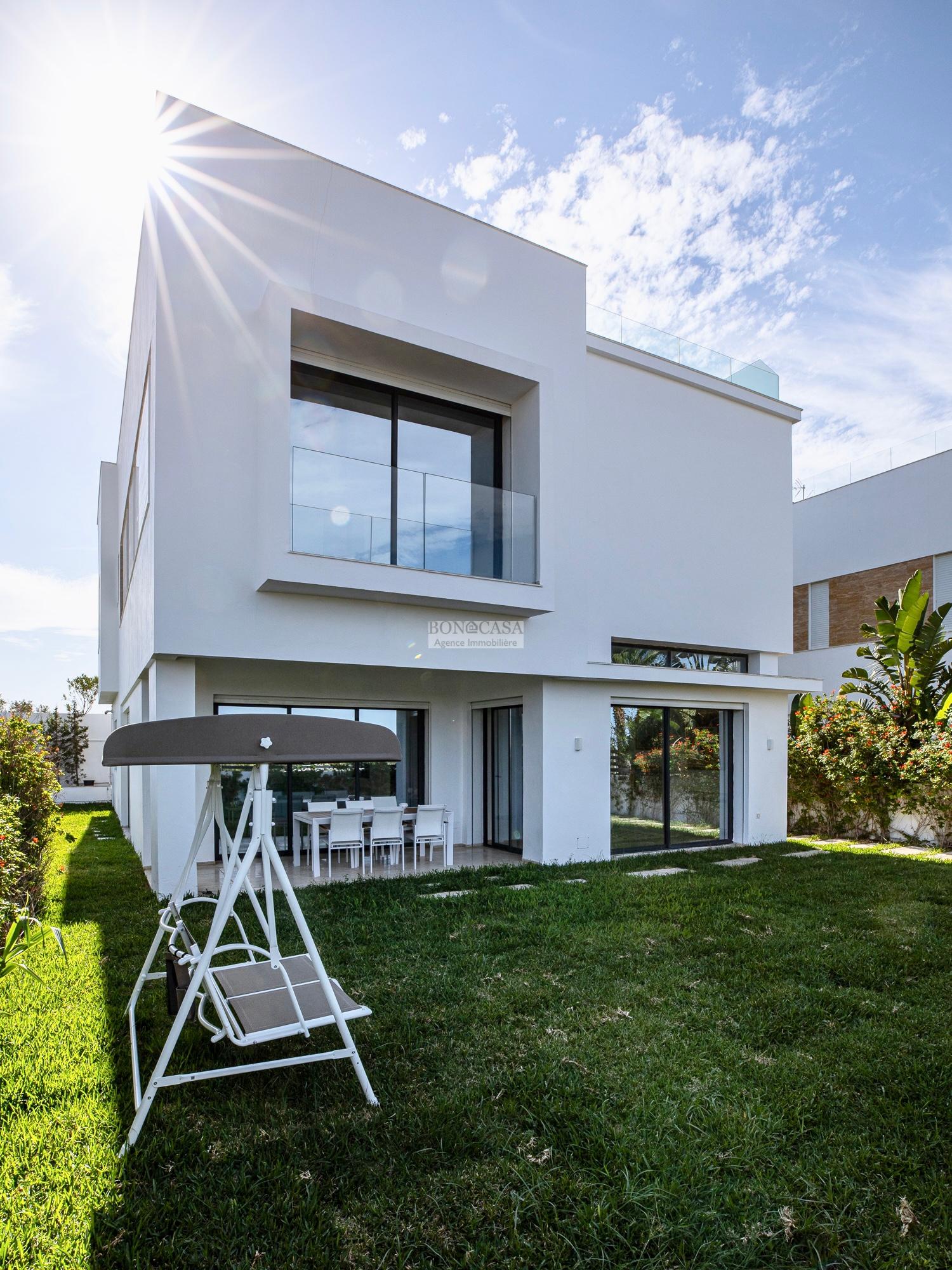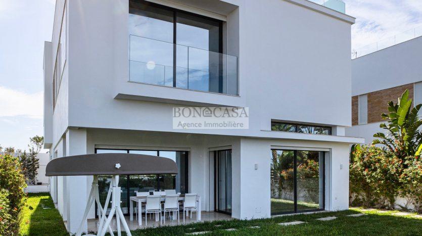 BONACASA vous propose à la location une luxueuse villa avec jardin et une terrasse suspendue aménagée par une piscine et dotée d’une belle vue dégagée et sur mer.