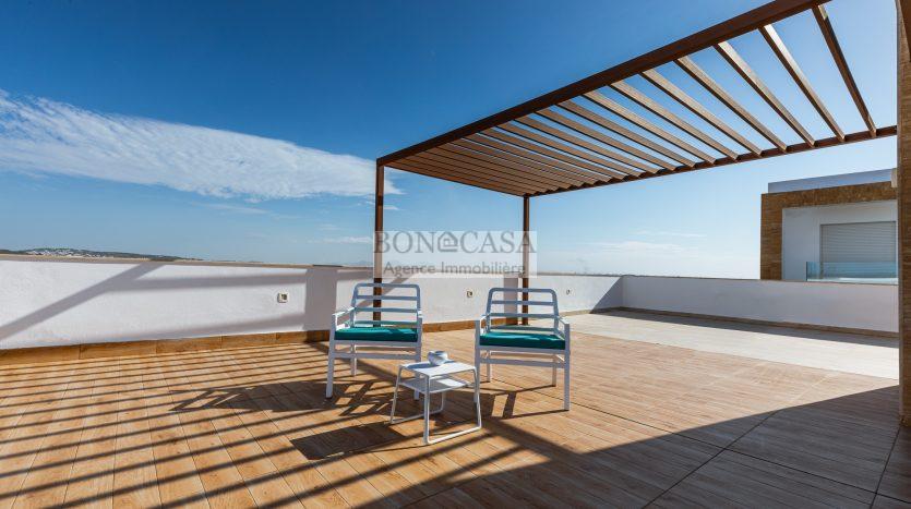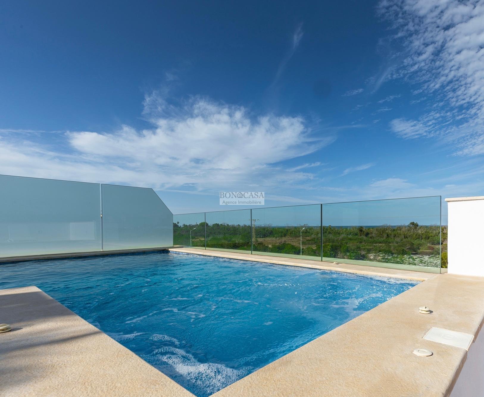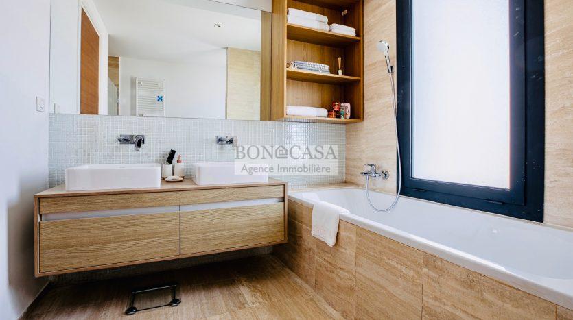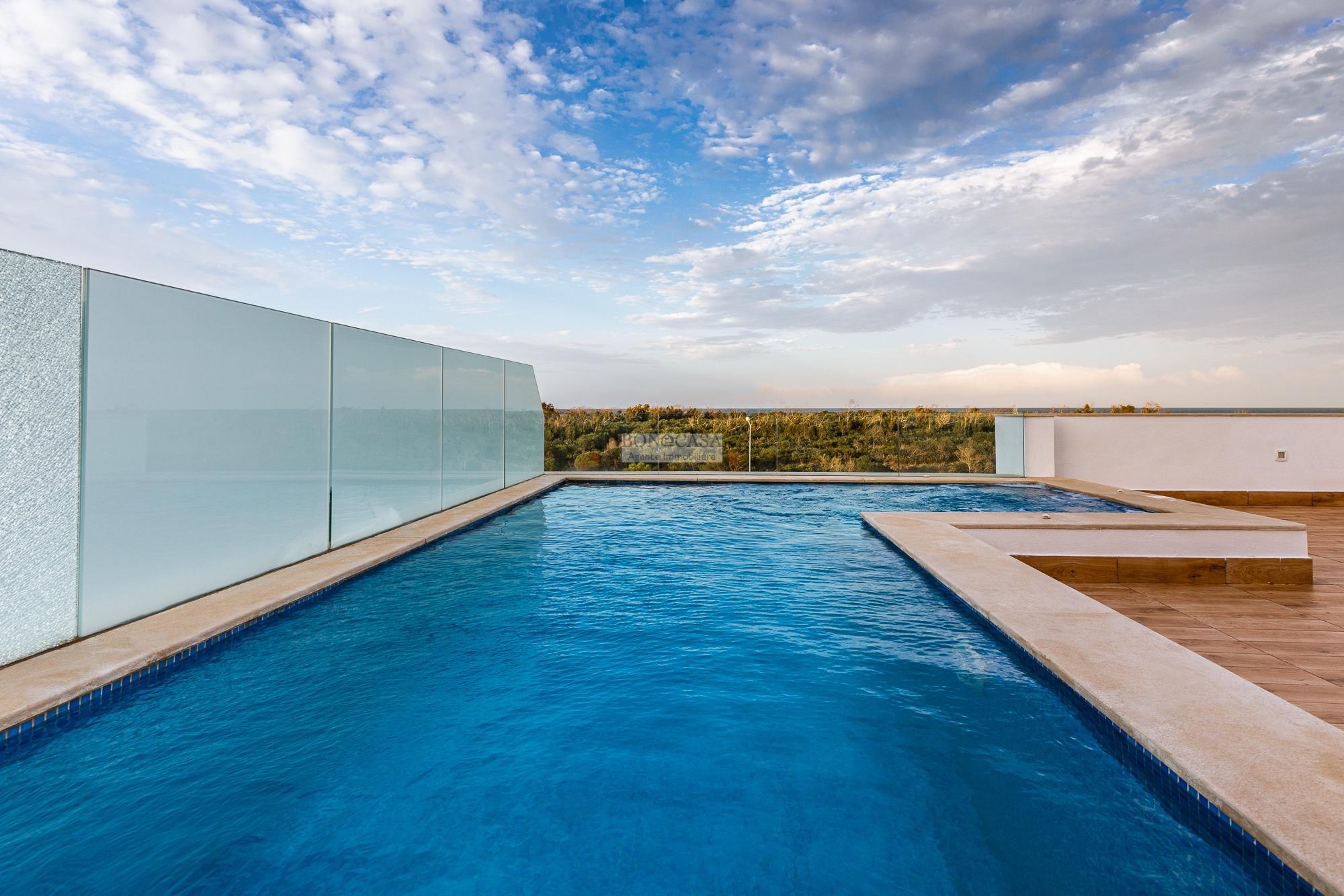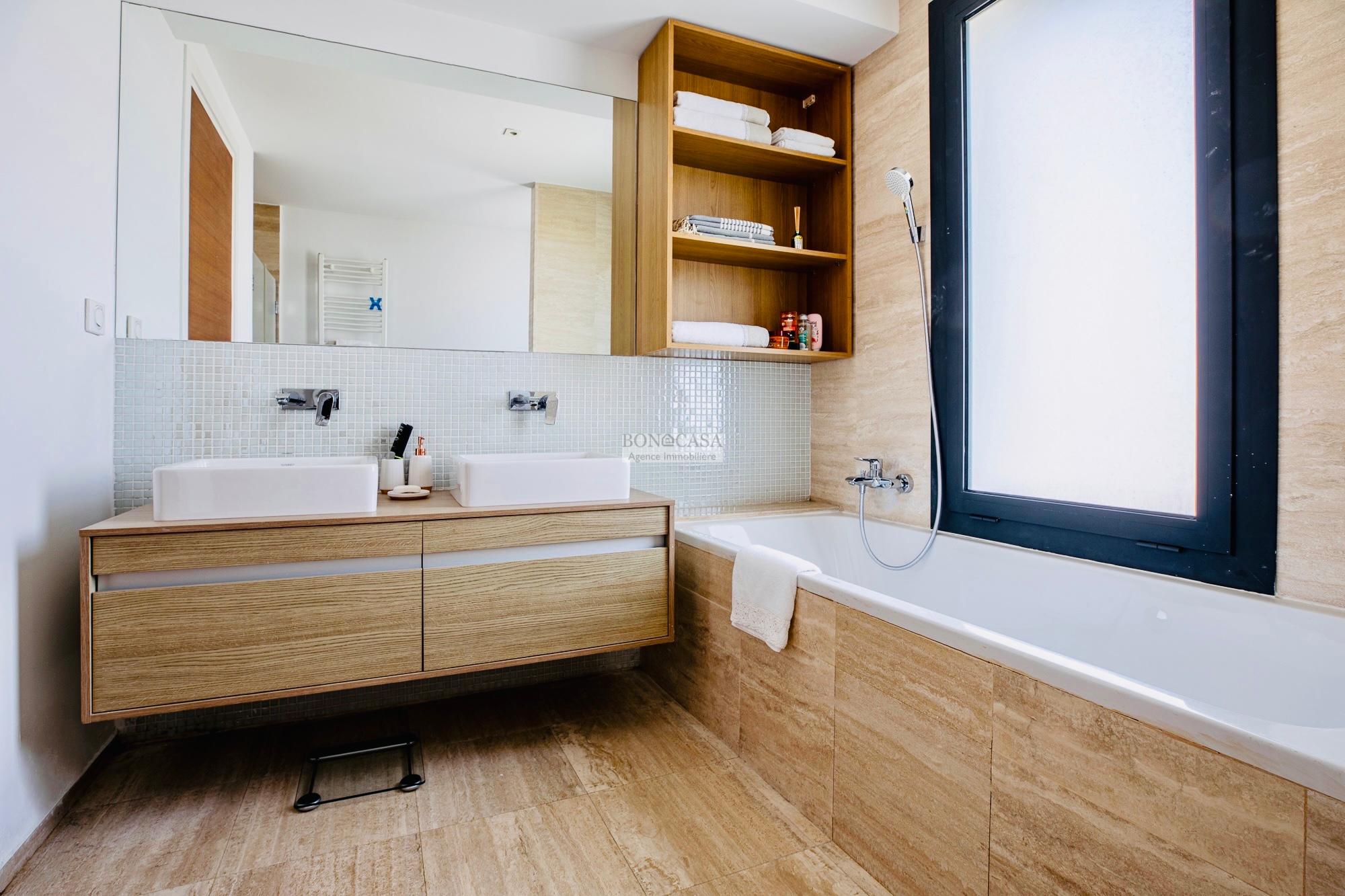 BONACASA vous propose à la location une luxueuse villa avec jardin et une terrasse suspendue aménagée par une piscine et dotée d’une belle vue dégagée et sur mer.
