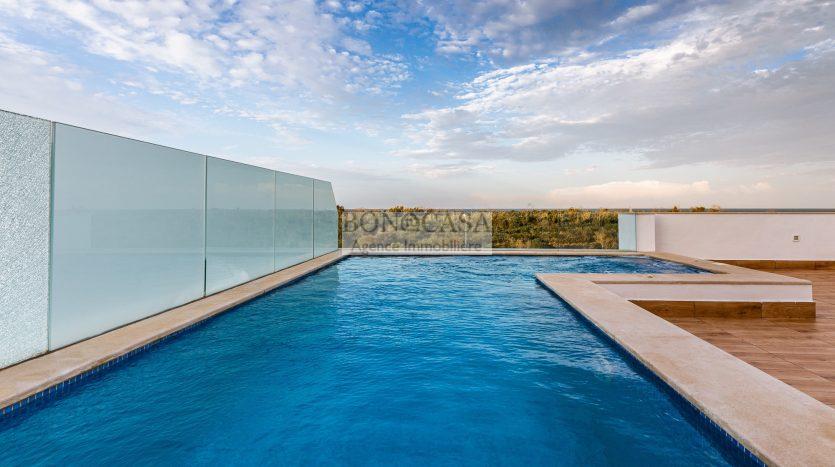 On trouve au rooftop une jolie terrasse et une piscine suspendue.