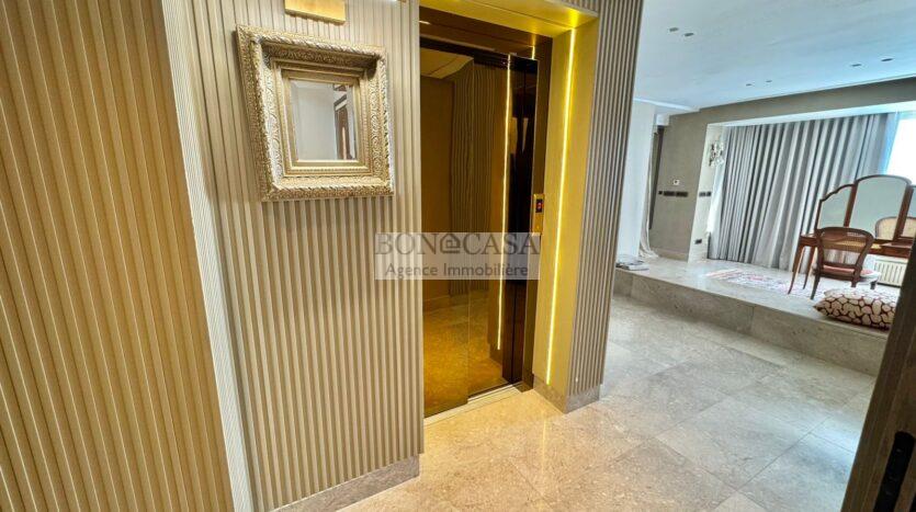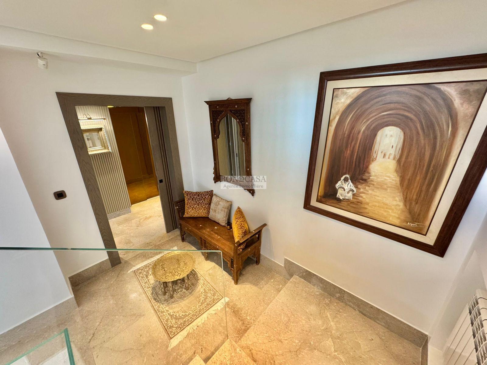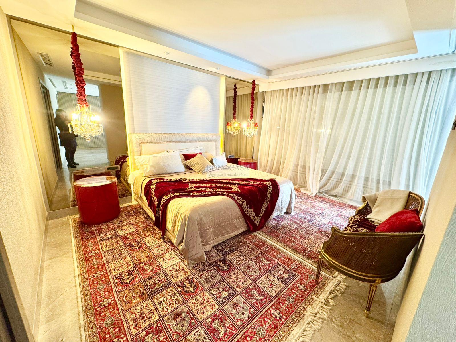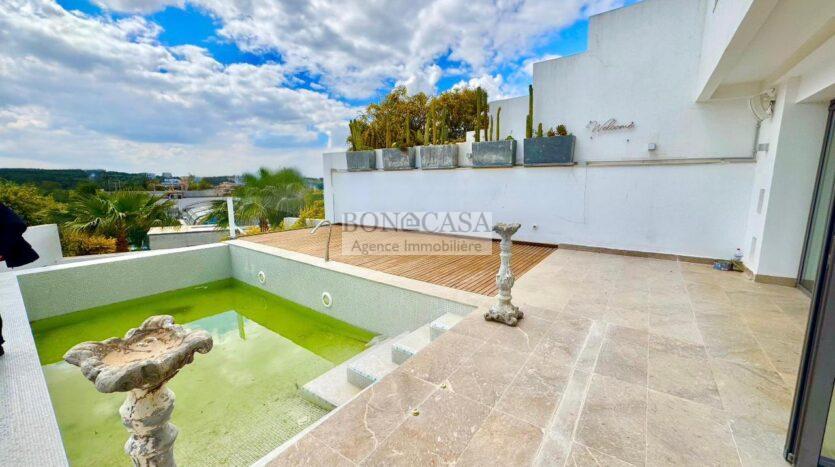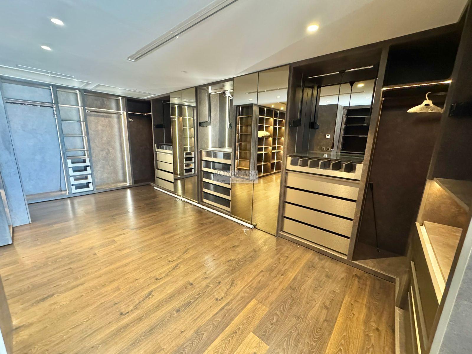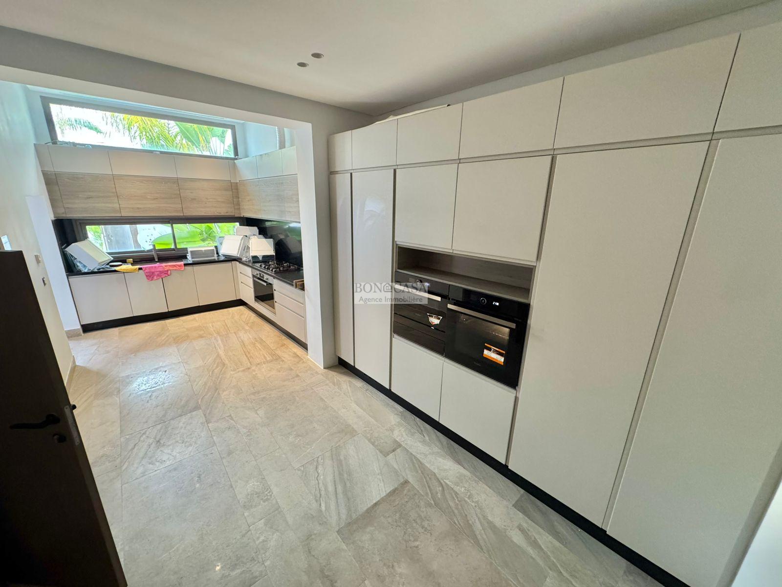 BONACASA vous propose à la location une luxueuse villa richement meublée avec un style moderne et raffiné sur quatre niveaux avec ascenseur située dans un quartier résidentiel bien gardée sur les collines de Gammarth.