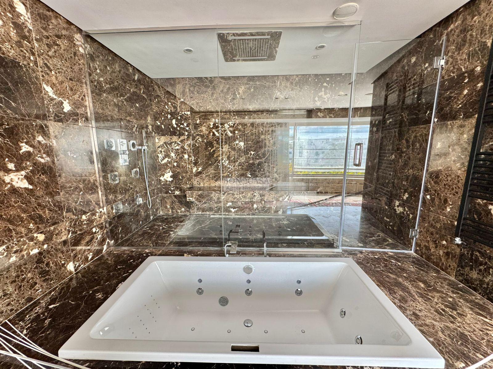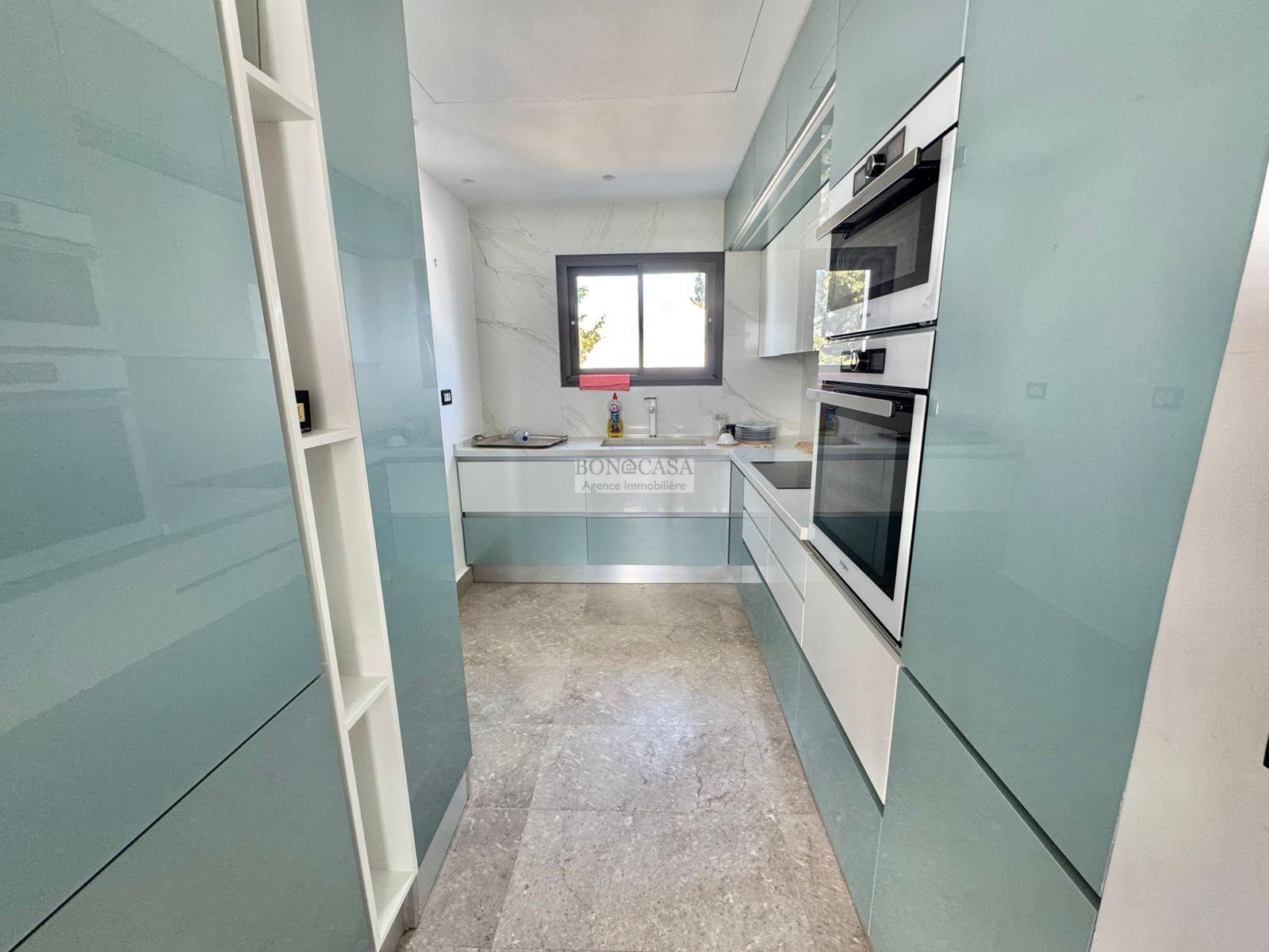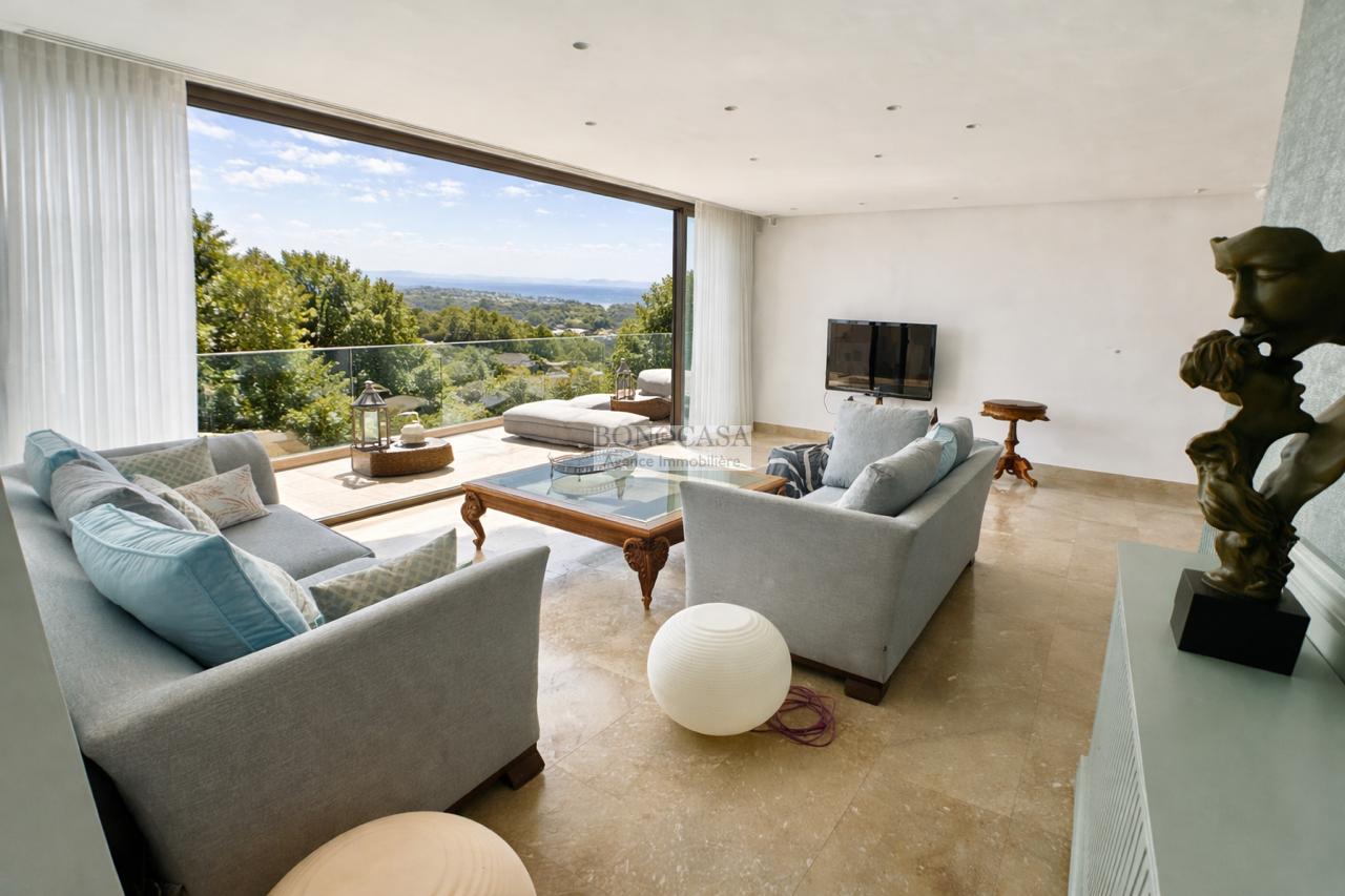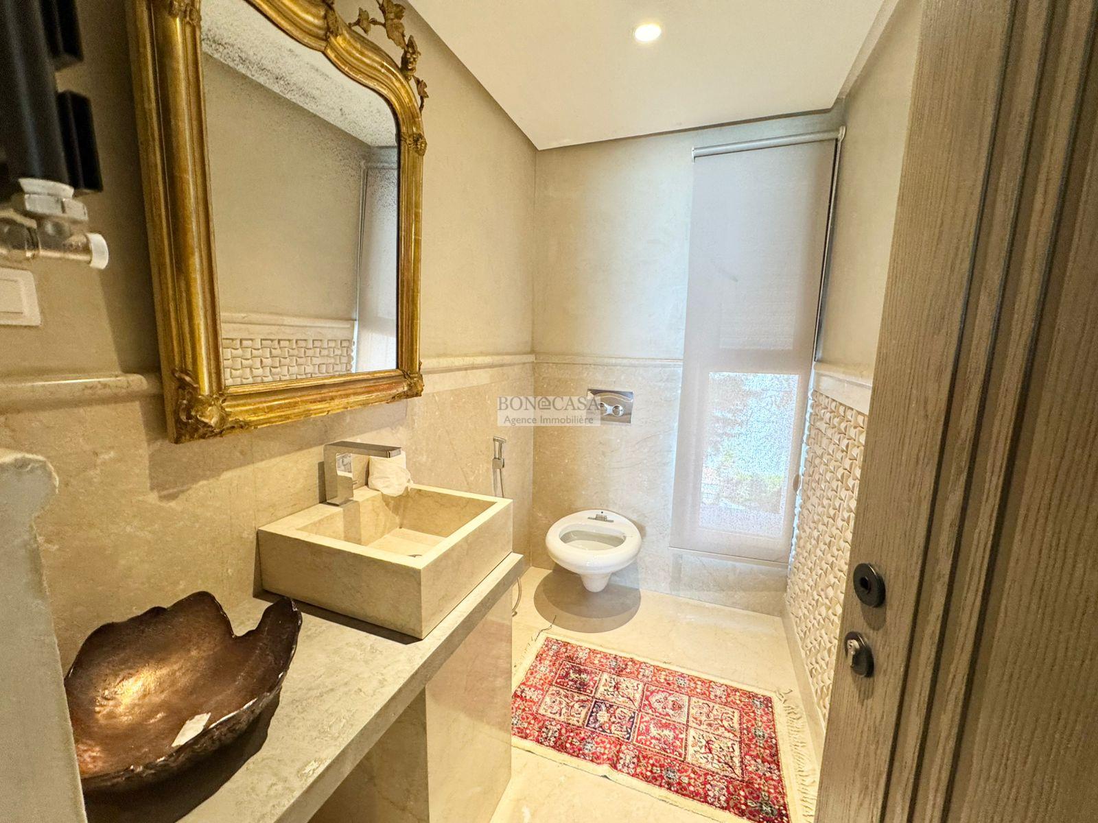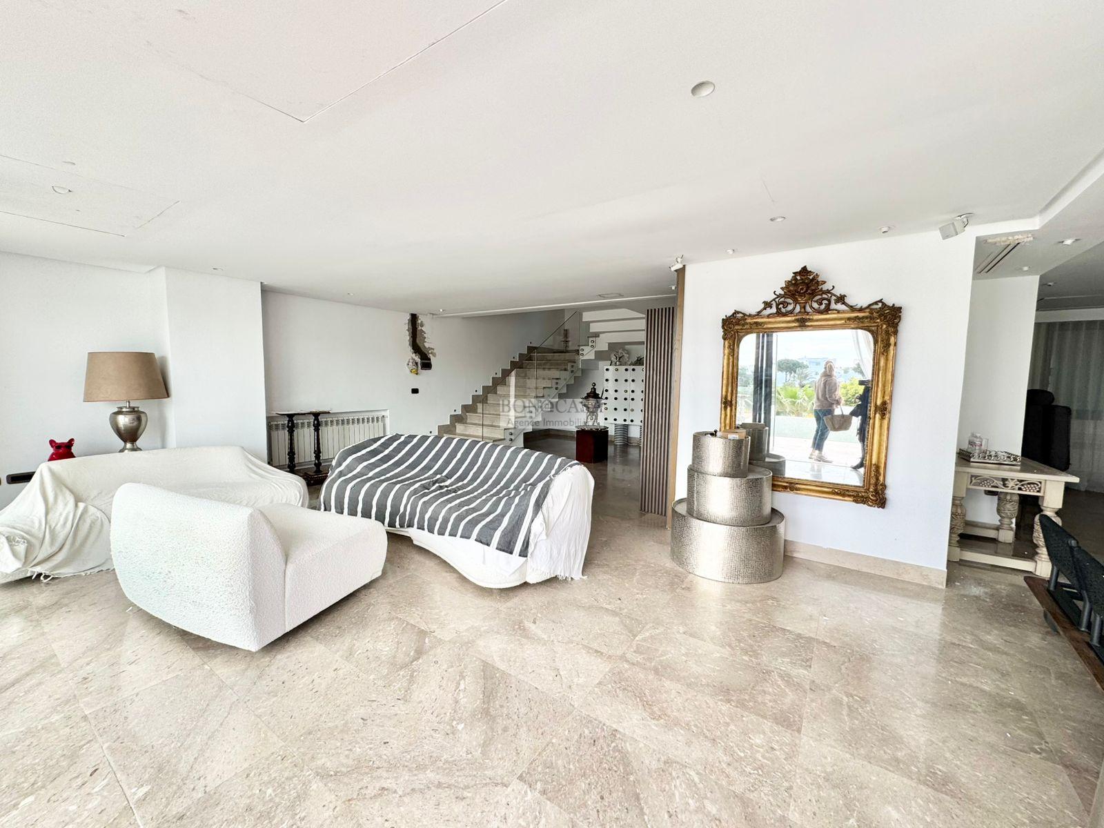 BONACASA vous propose à la location une luxueuse villa richement meublée avec un style moderne et raffiné sur quatre niveaux avec ascenseur située dans un quartier résidentiel bien gardée sur les collines de Gammarth.