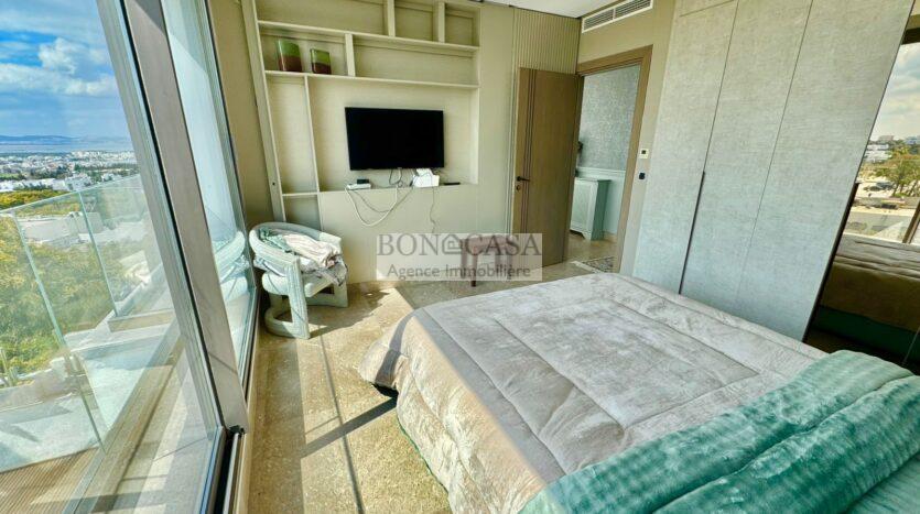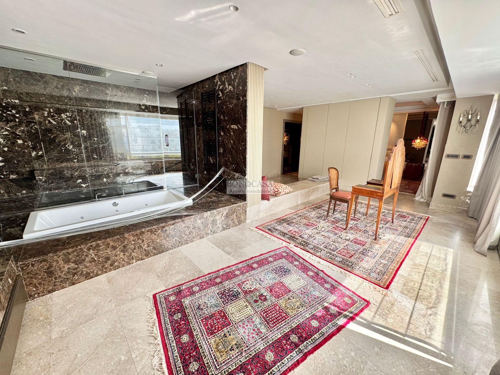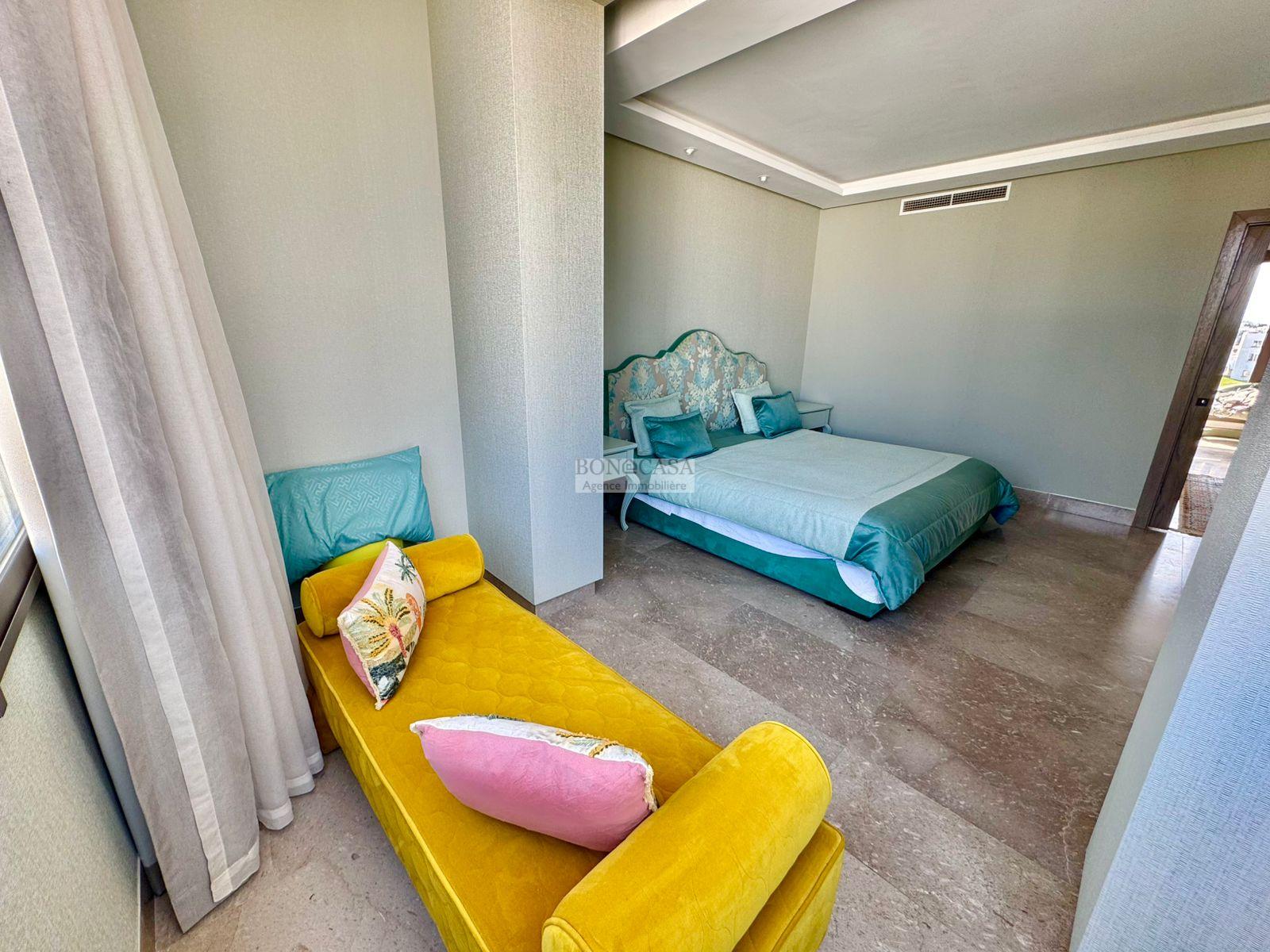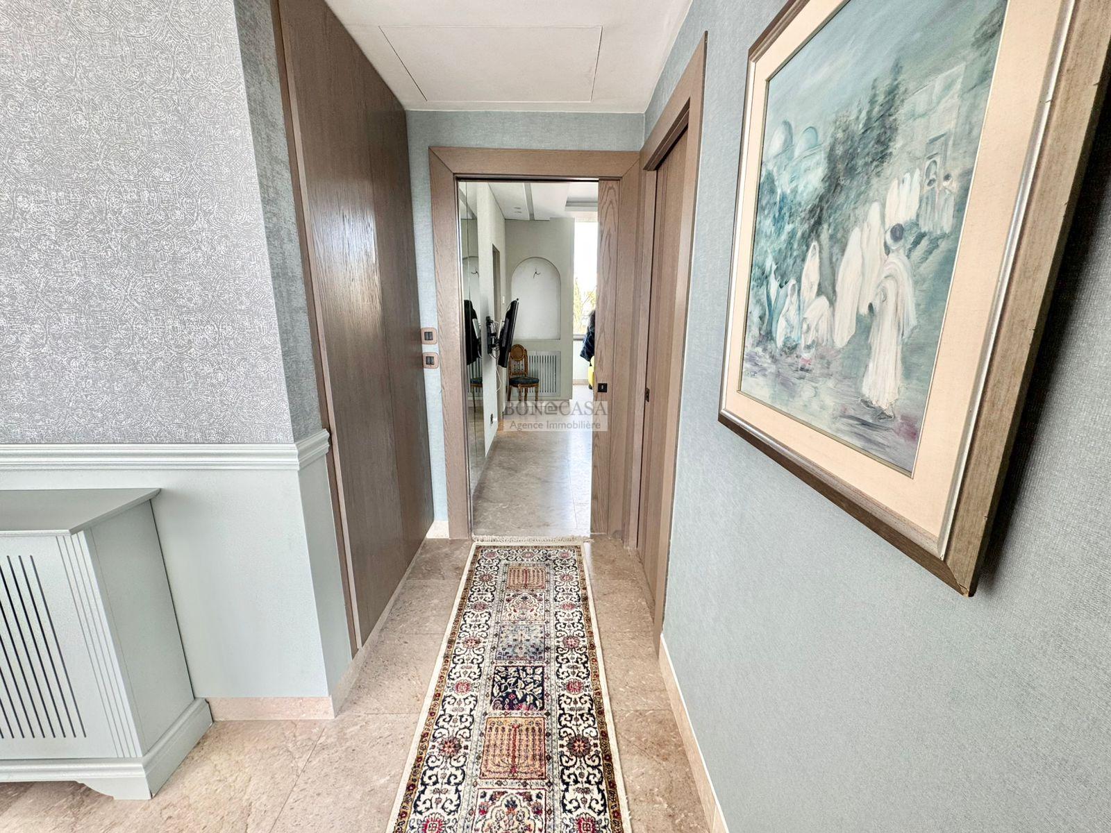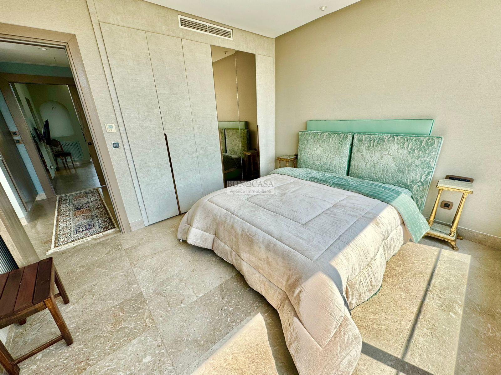 BONACASA vous propose à la location une luxueuse villa richement meublée avec un style moderne et raffiné sur quatre niveaux avec ascenseur située dans un quartier résidentiel bien gardée sur les collines de Gammarth.