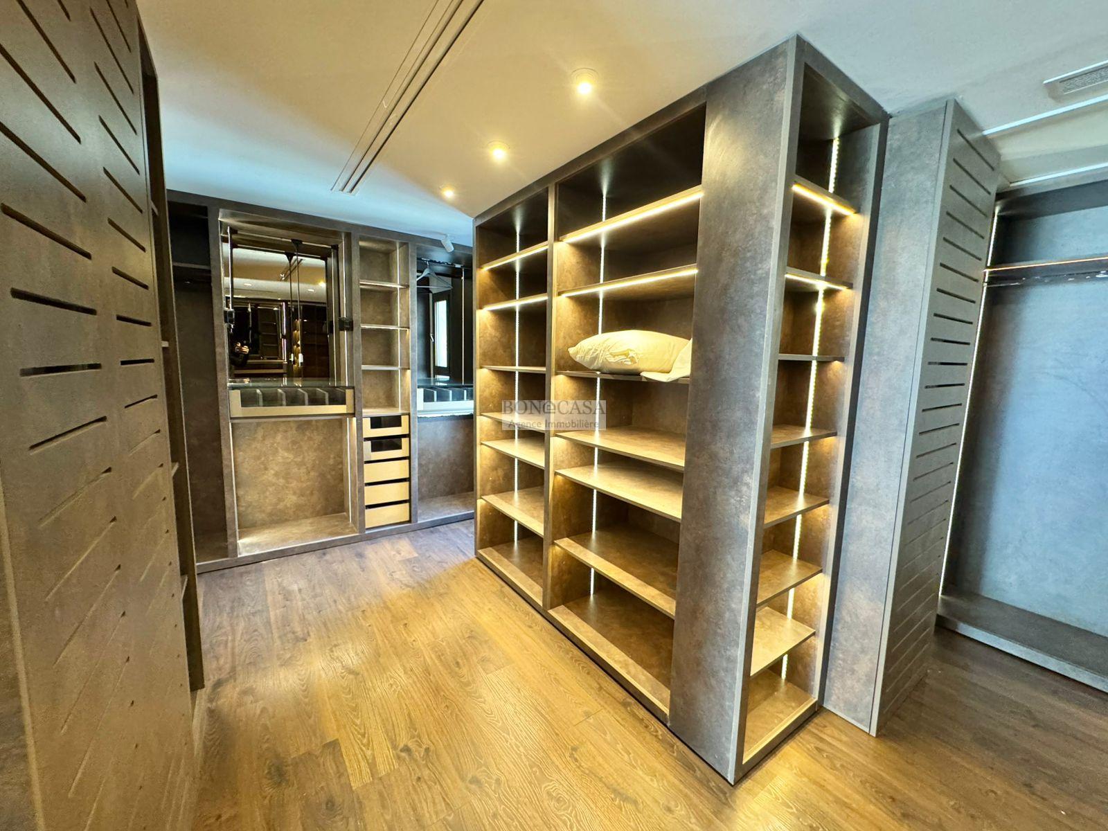 Le premier étage loge une grande suite parentale avec un immense dressing room, une salle de bain avec baignoire et douche à l’italienne et une salle d’eau.