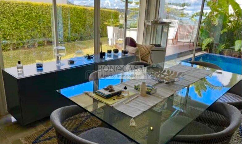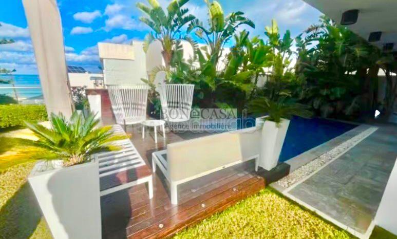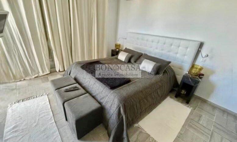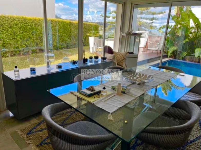 BONACASA vous propose à la location un superbe villa jumelée richement meublée avec un style moderne et raffiné, offrant des prestations de haut de gamme avec une vue imprenable sur la mer.