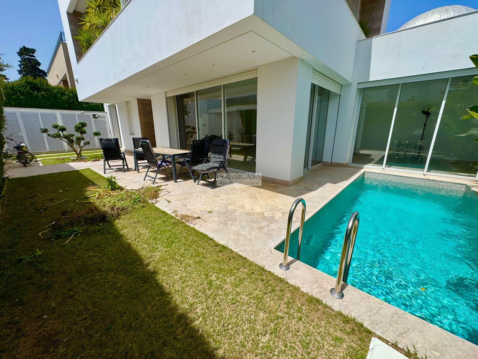 BONACASA vous propose à la location une luxueuse villa située dans résidence calme et bien gardée. Le rez-de-chauss ...