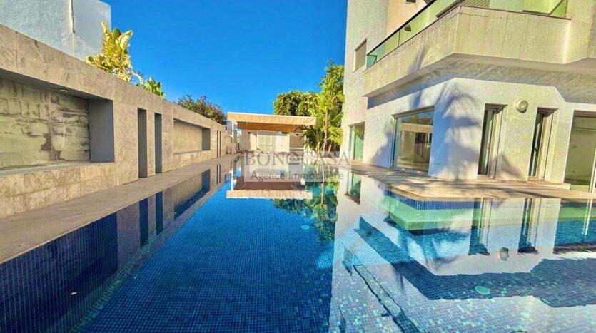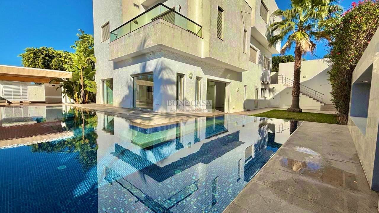 BONACASA vous propose à la location une somptueuse villa sur trois niveaux nichée dans un quartier résidentiel calme et bien sécurisé sur les collines de Gammarth.