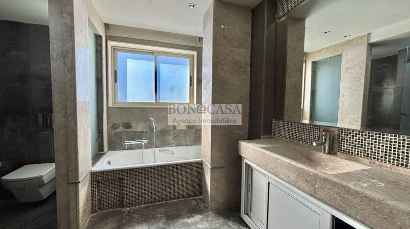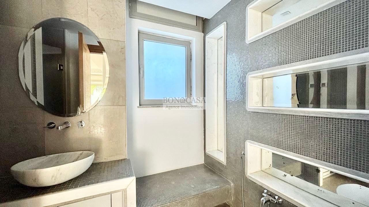Le premier étage abrite un deuxième salon, une première suite avec son dressing et sa salle de bain avec baignoire et douche à l’italienne et deux chambres à coucher qui partagent une salle de bain commune.