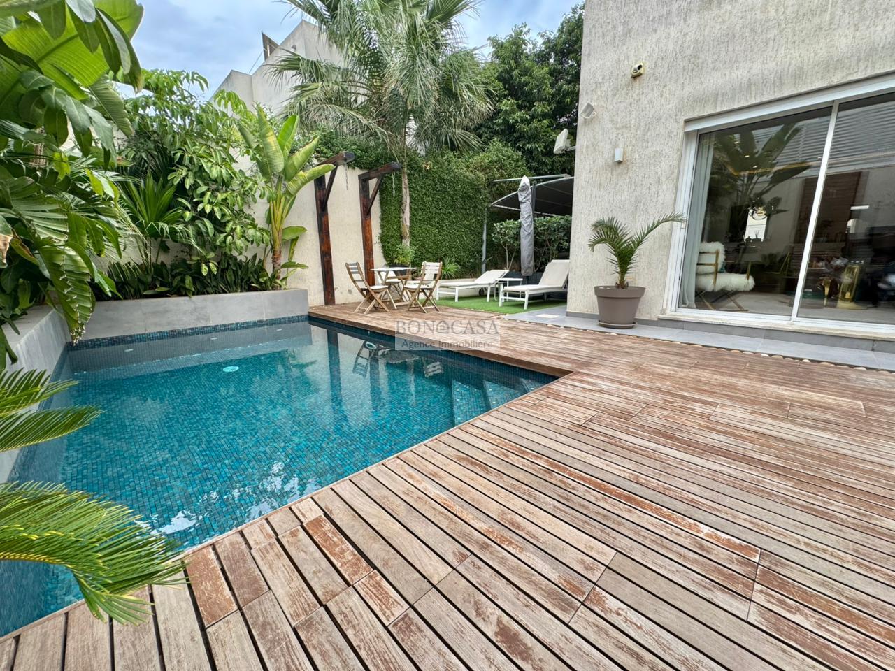 BONACASA vous propose à la location une luxueuse villa jumelée richement meublée avec un style moderne et raffiné, ...