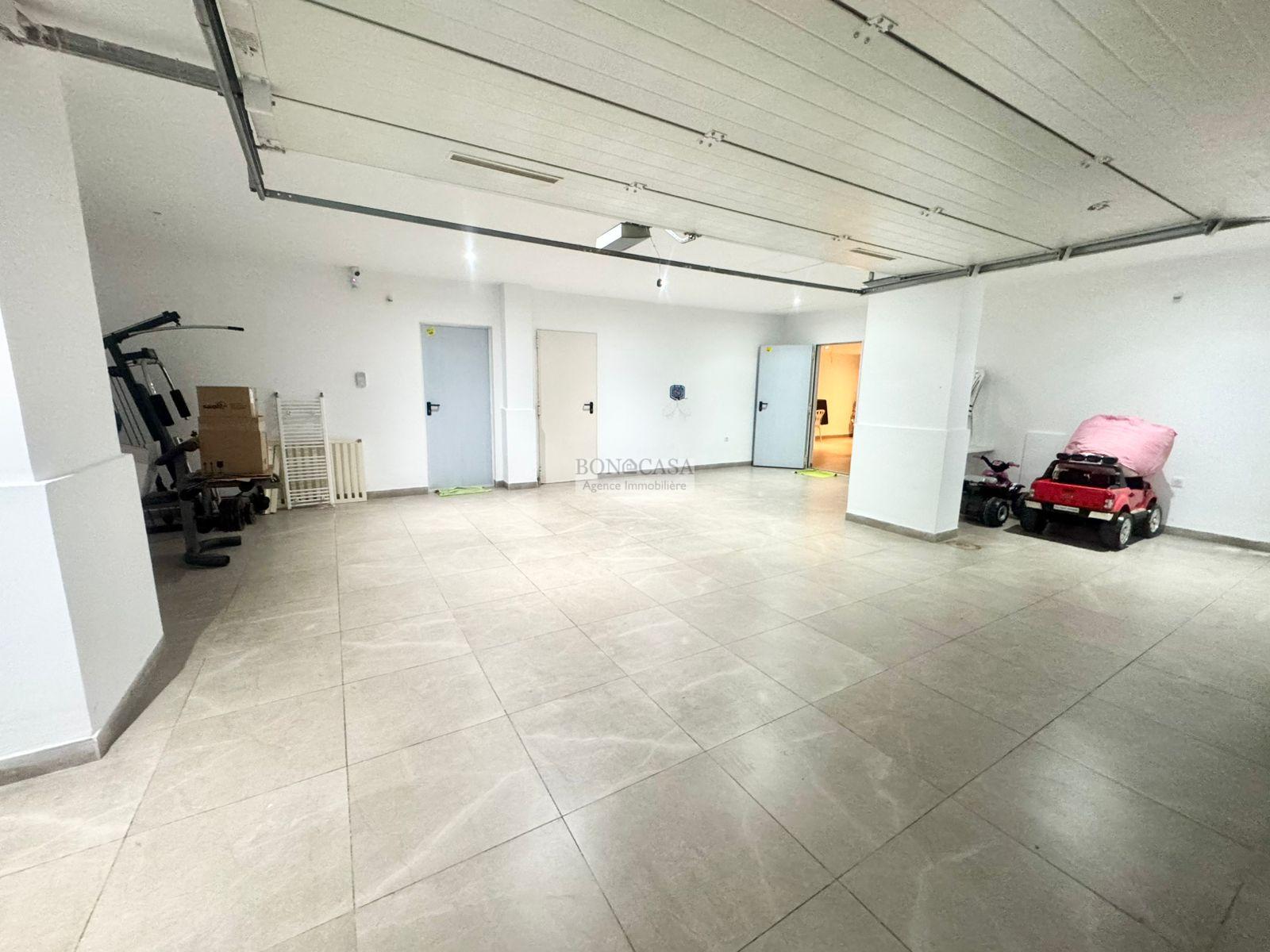 Le sous-sol on trouve un deuxième salon, une chambre de rangement et un parking privé pour deux à trois voitures.