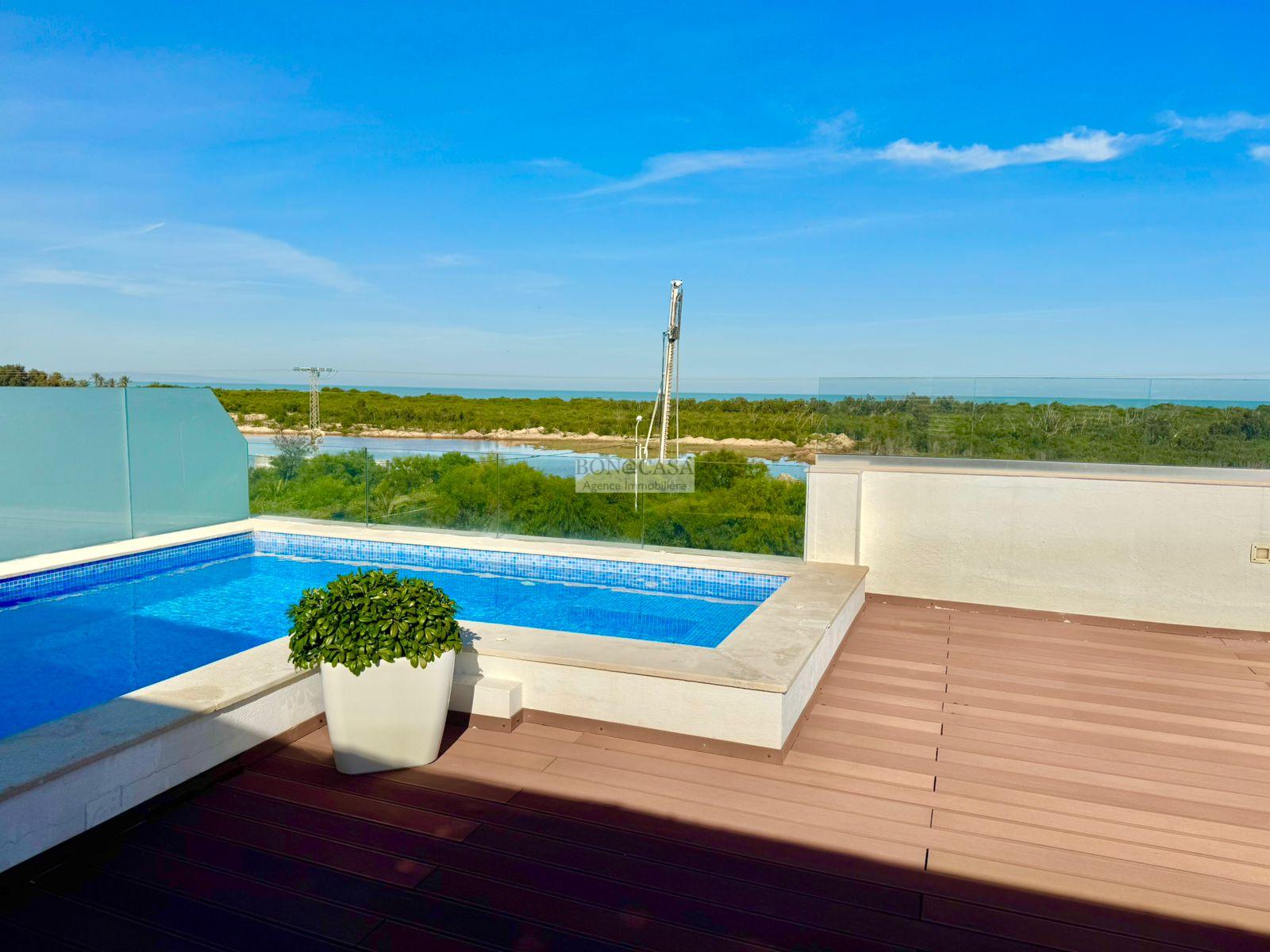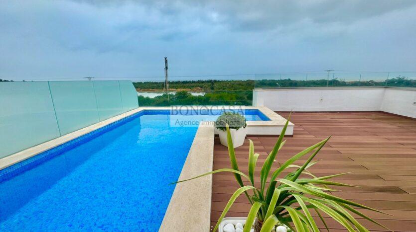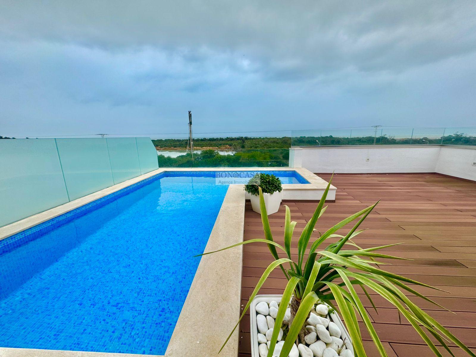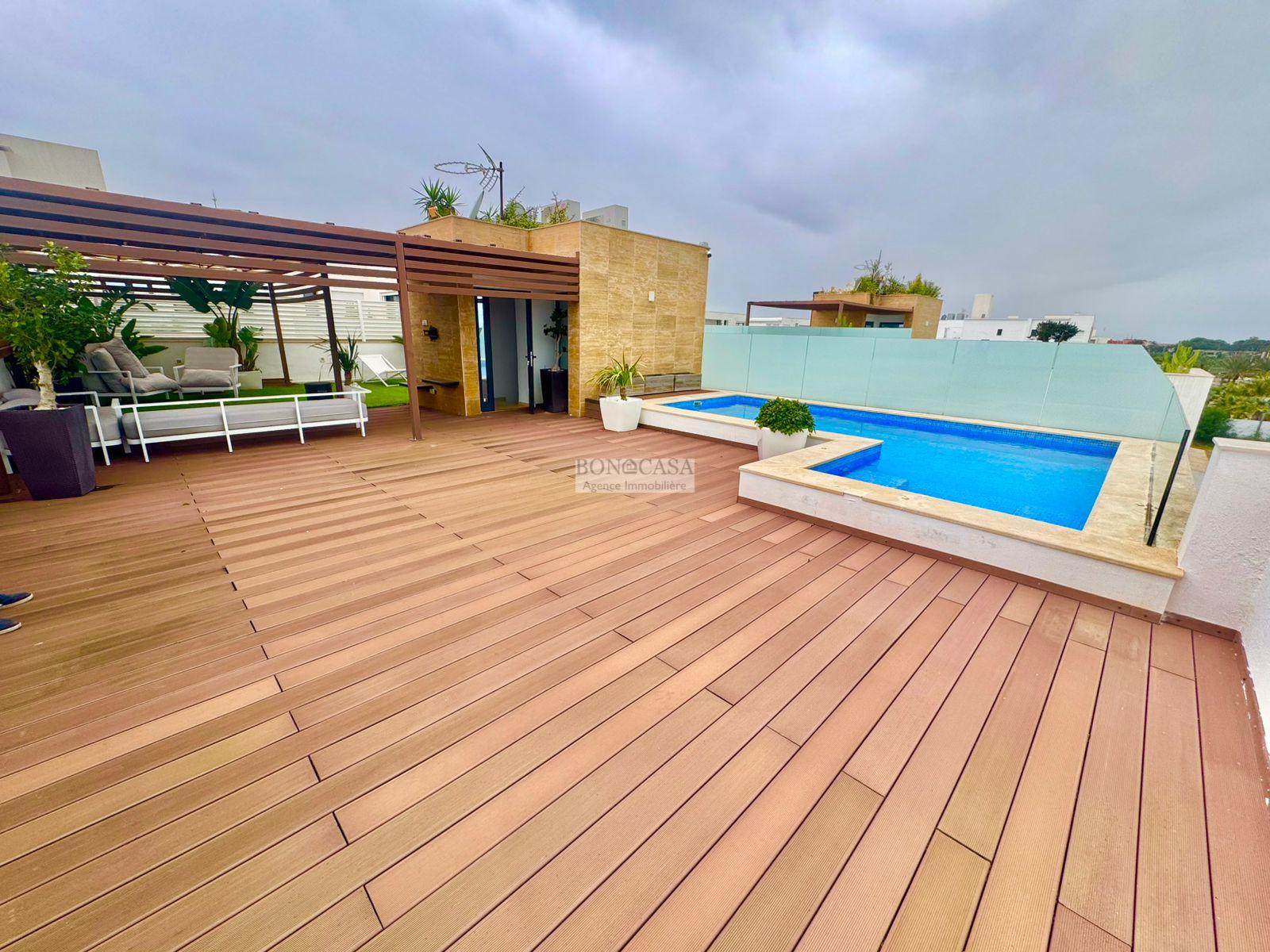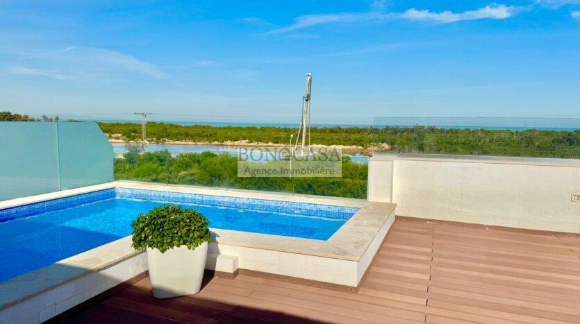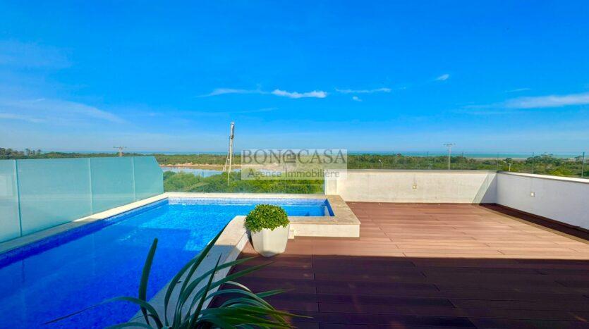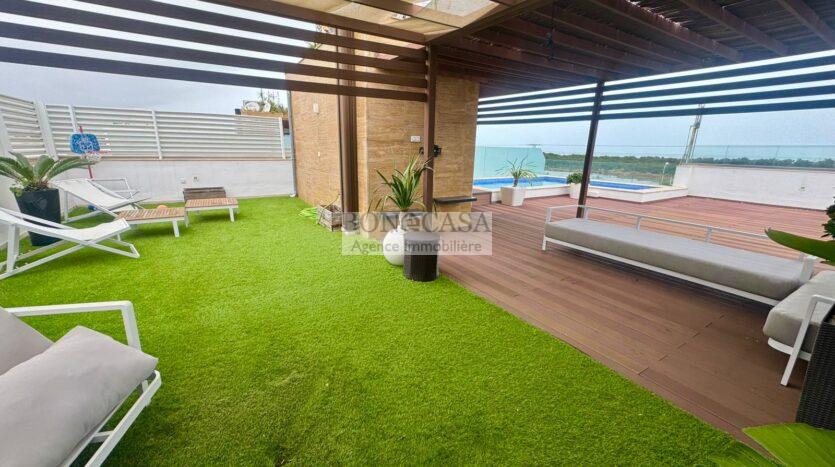 Le deuxième étage loge un joli rooftop très bien aménagé et une piscine avec une vue imprenable sur la mer.