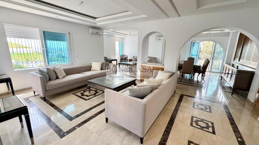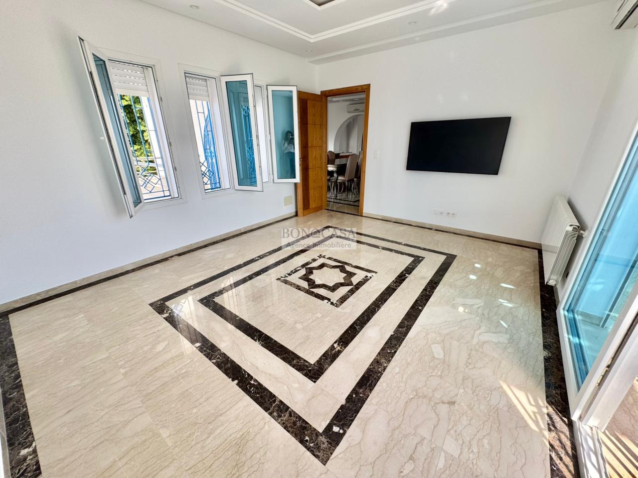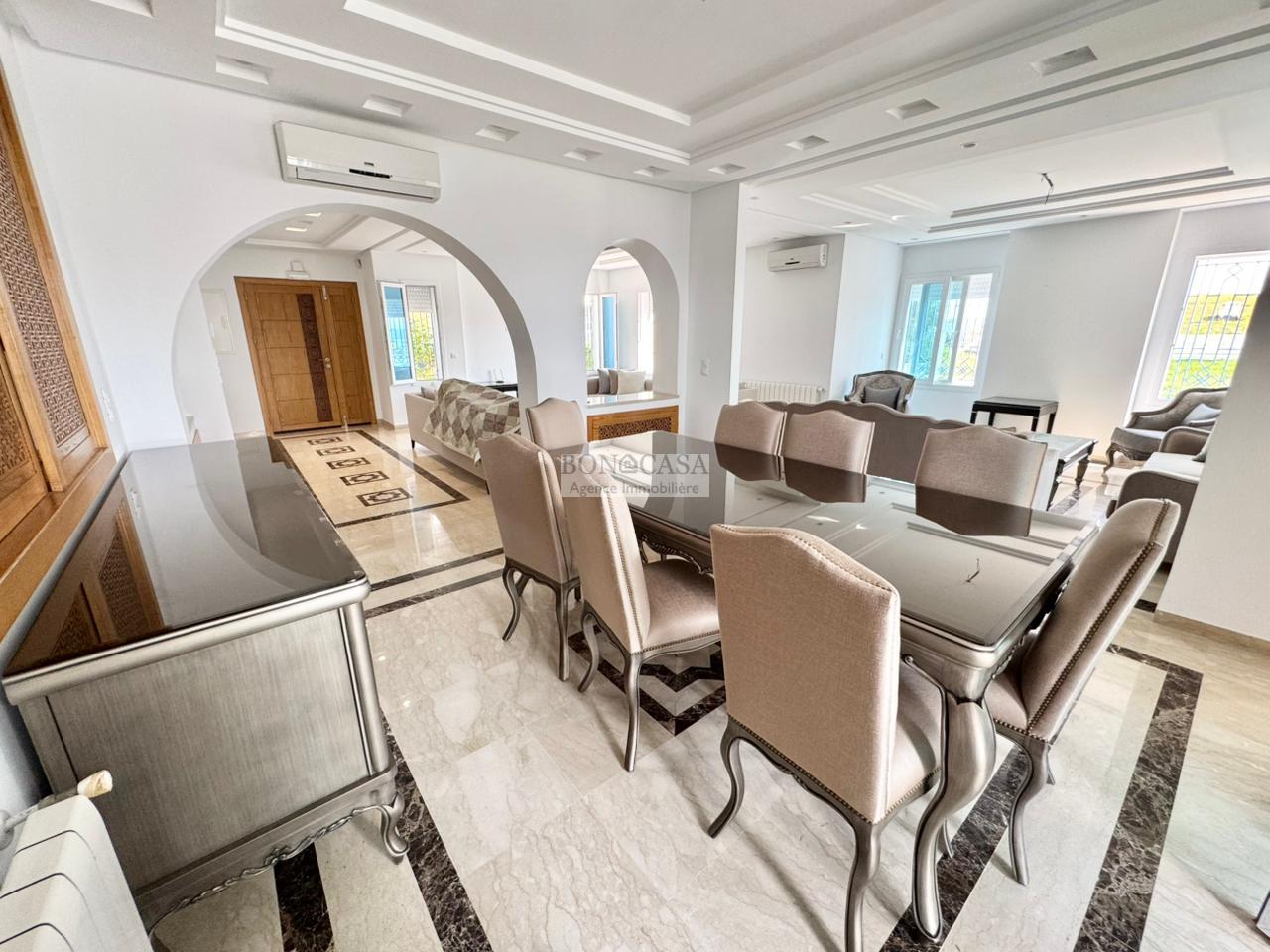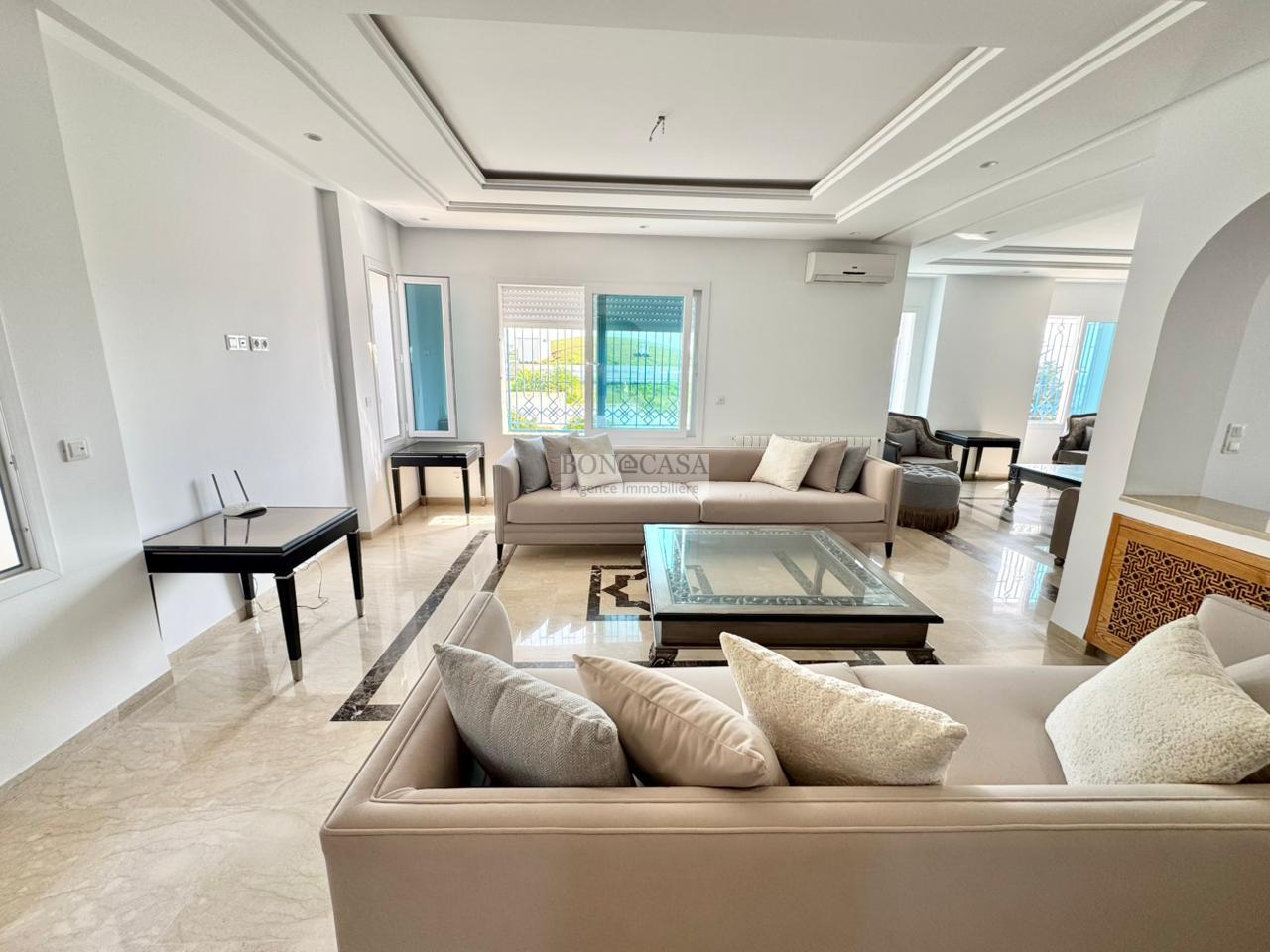 BONACASA vous propose à la location un splendide villa sur trois niveaux située dans un quartier résidentiel calme et sécurisée sur les collines de Gammarth