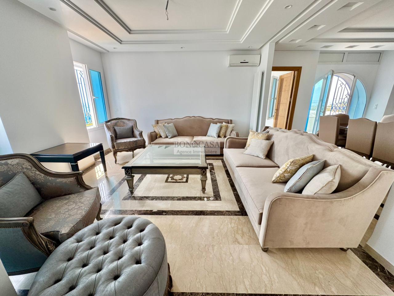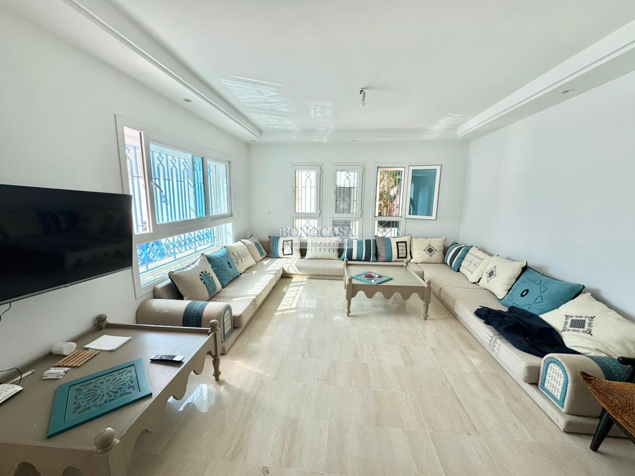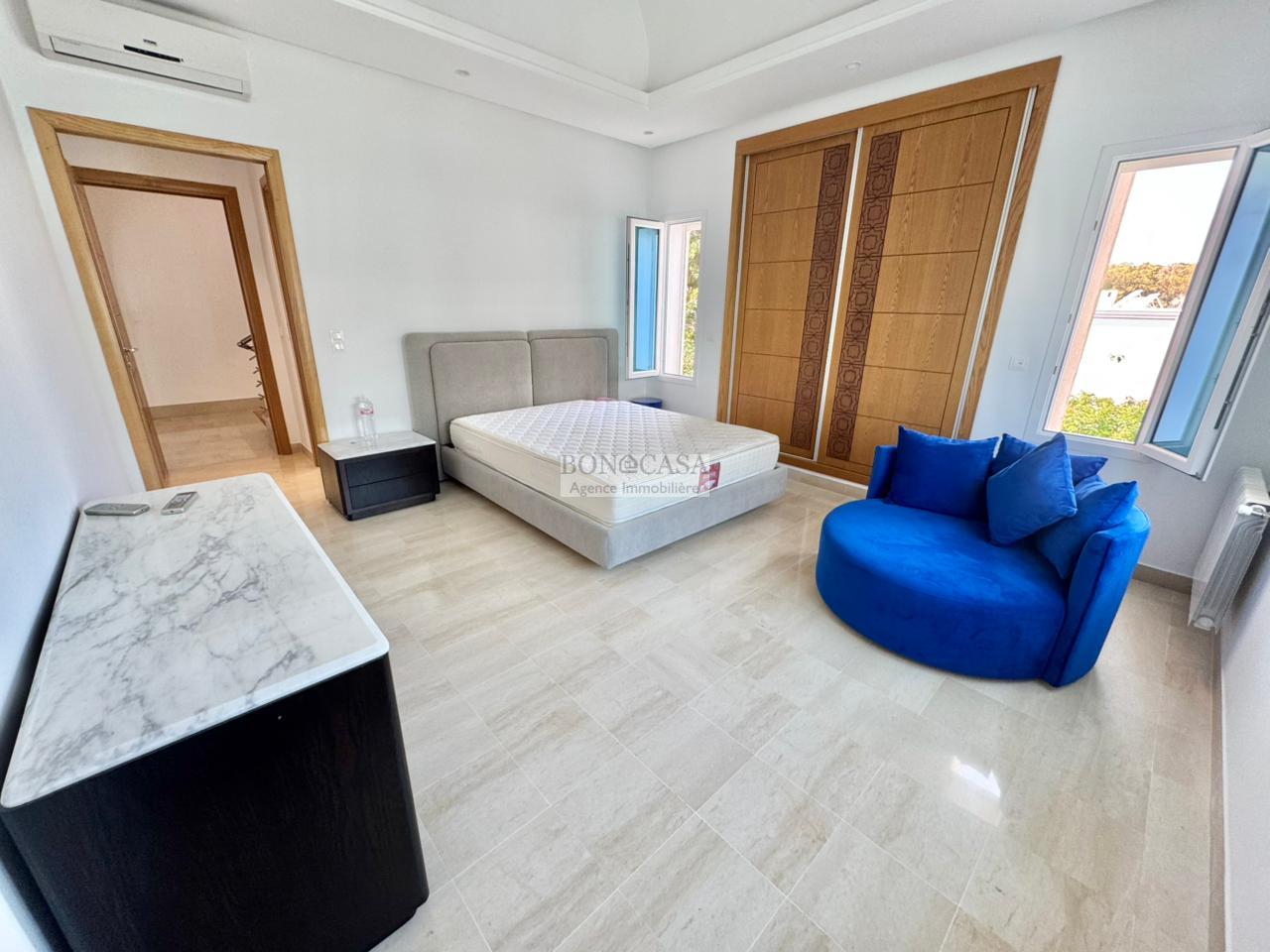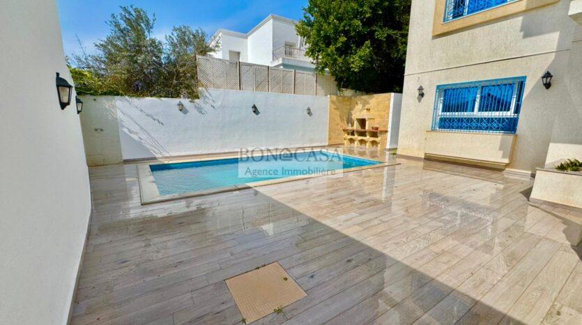 BONACASA vous propose à la location un splendide villa sur trois niveaux située dans un quartier résidentiel calme et sécurisée sur les collines de Gammarth