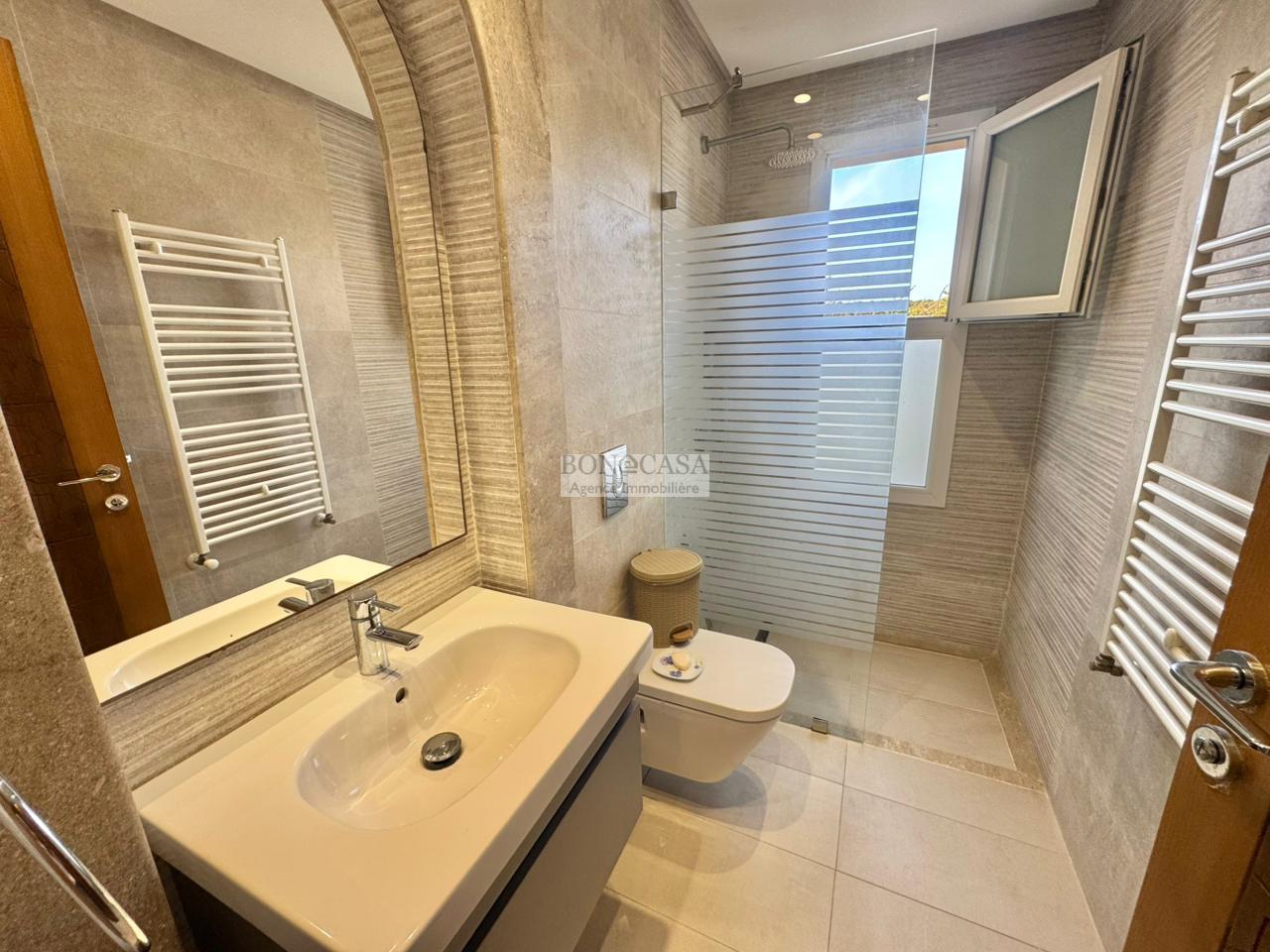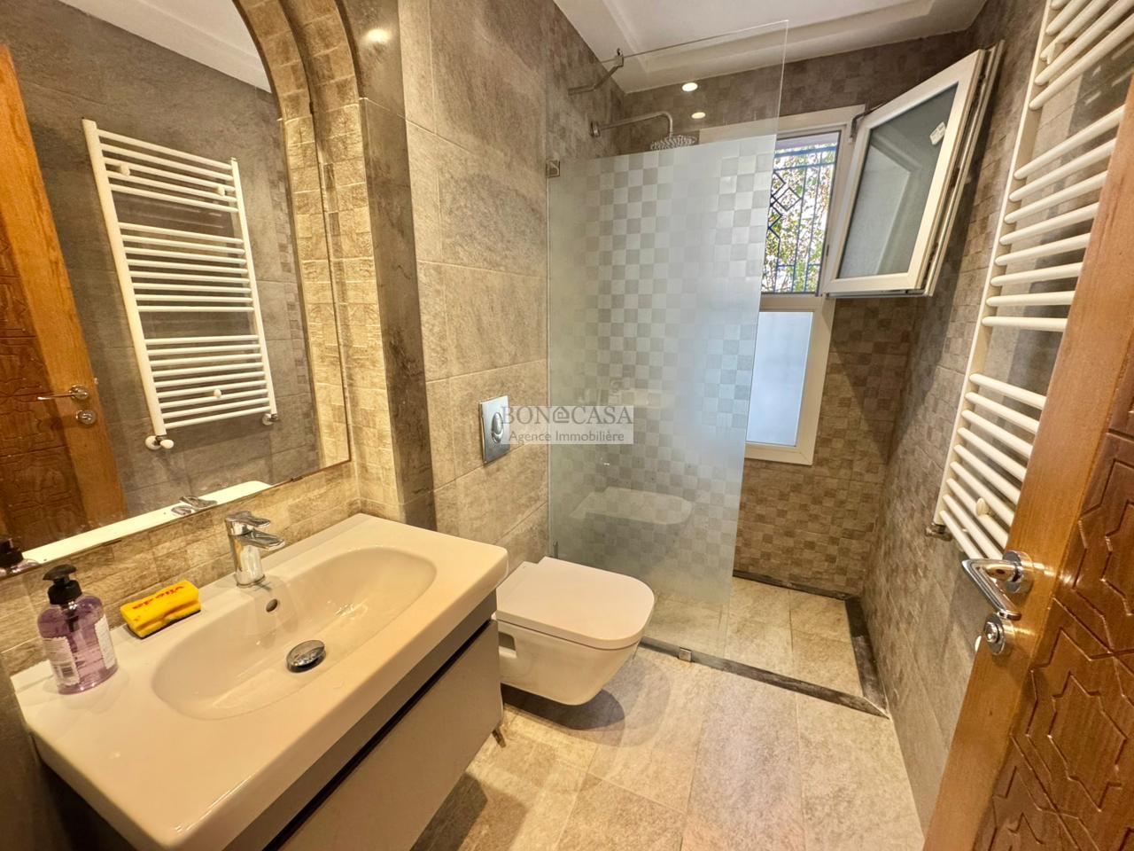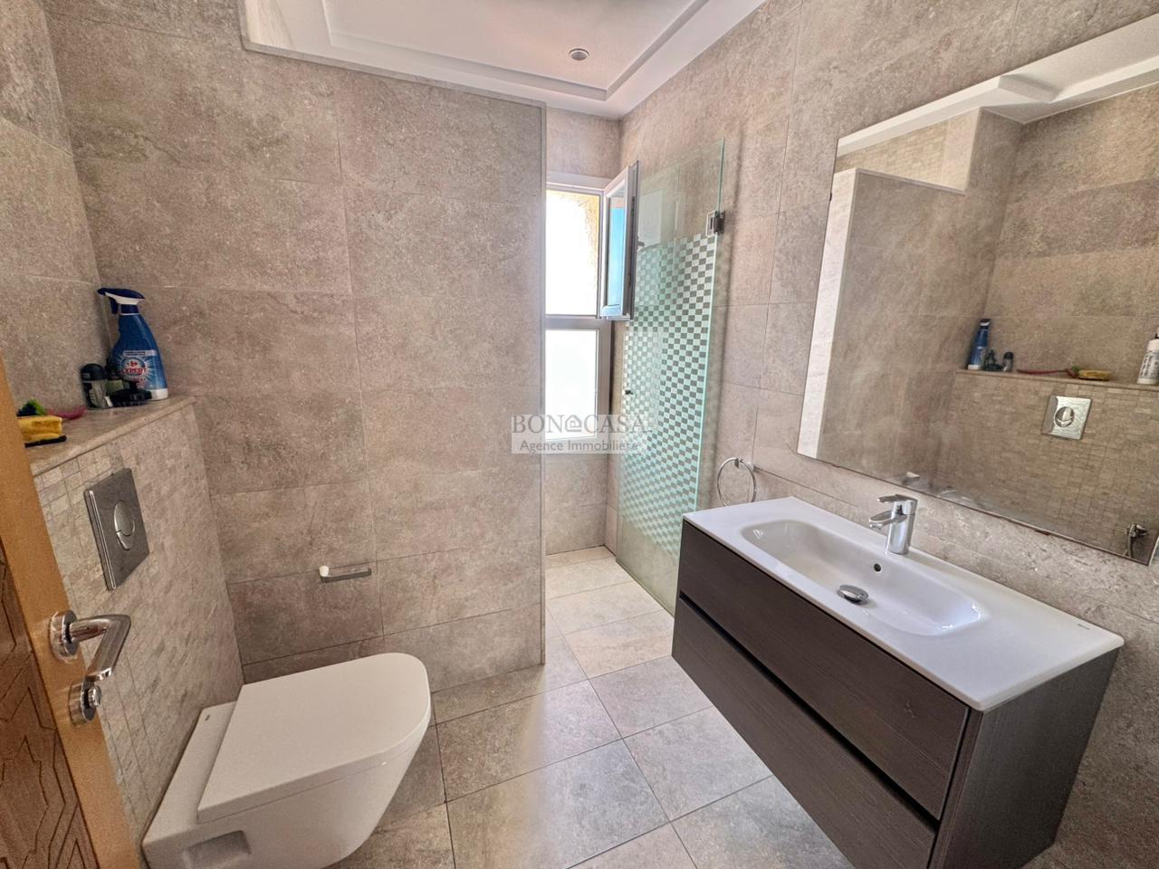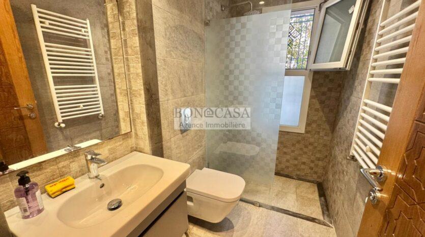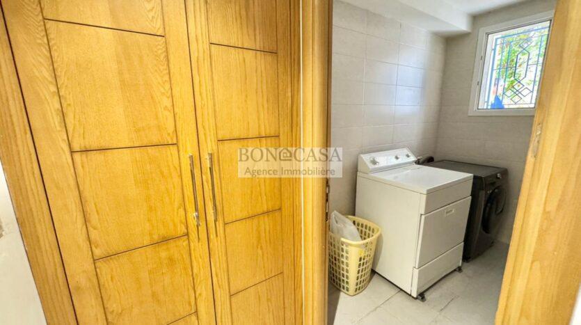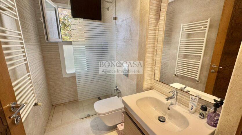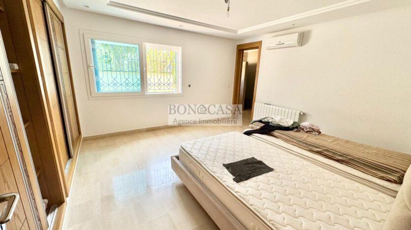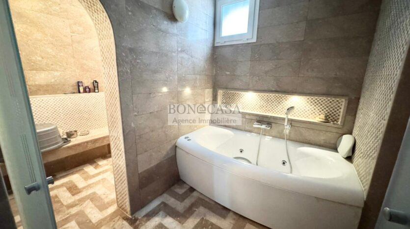 Le rez-de-jardin abrite un séjour avec un style arabesque, une cuisine américaine bien équipée, une suite, un hammam avec une vestiaire, une salle d’eau avec une douche à l’italienne et une buanderie.