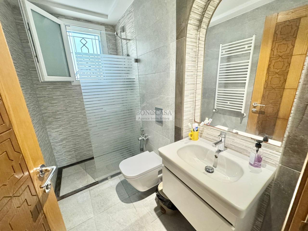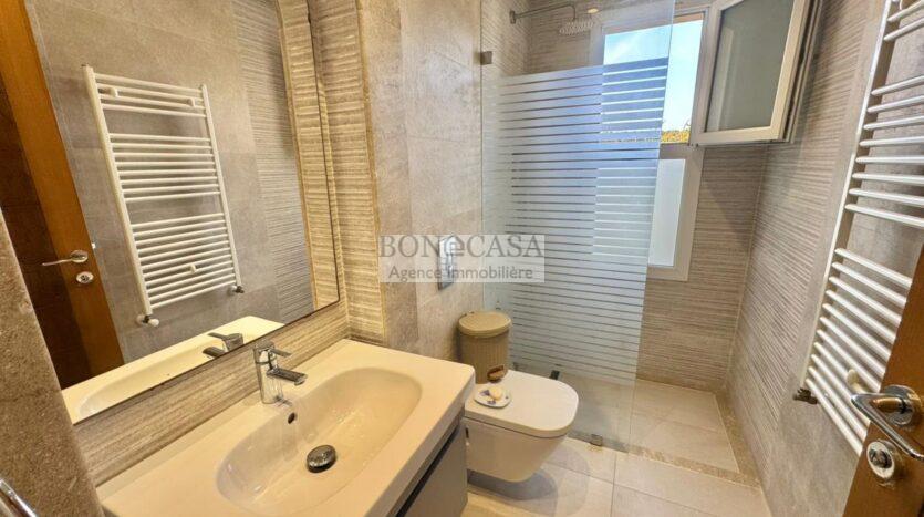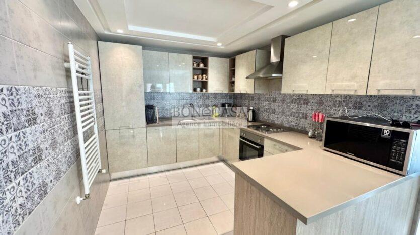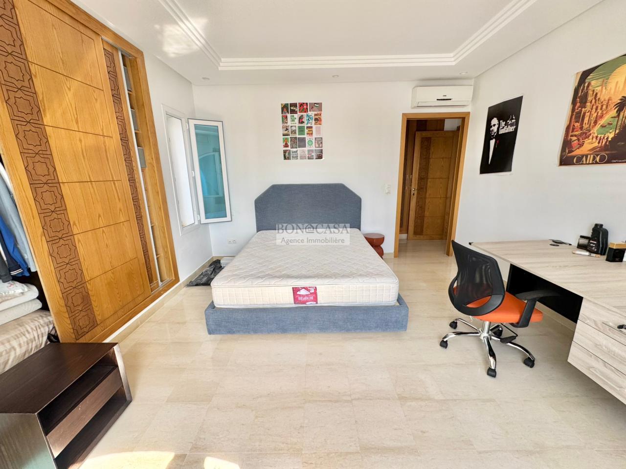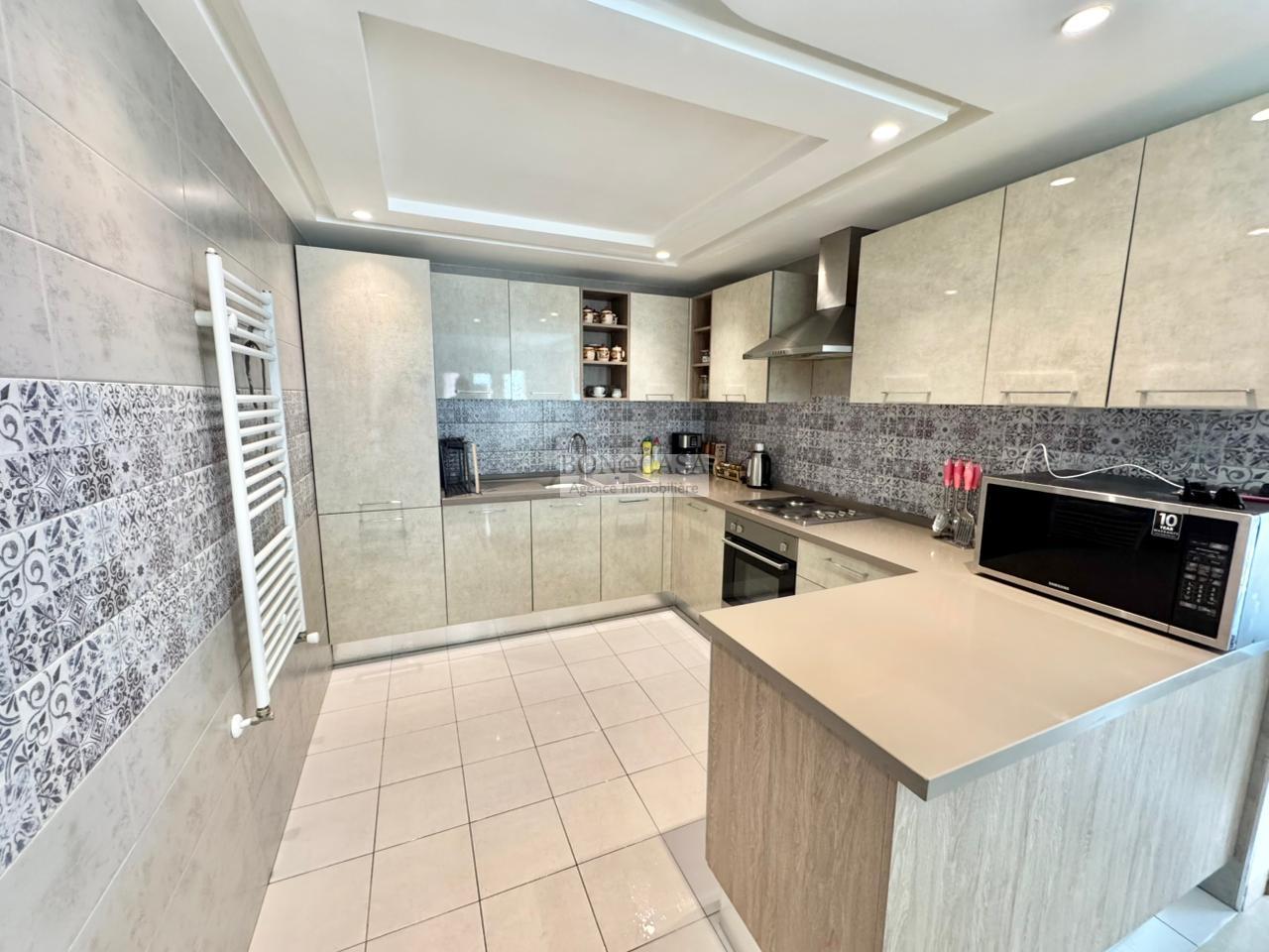 Le rez-de-jardin abrite un séjour avec un style arabesque, une cuisine américaine bien équipée, une suite, un hammam avec une vestiaire, une salle d’eau avec une douche à l’italienne et une buanderie.